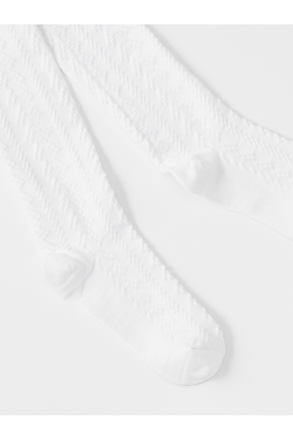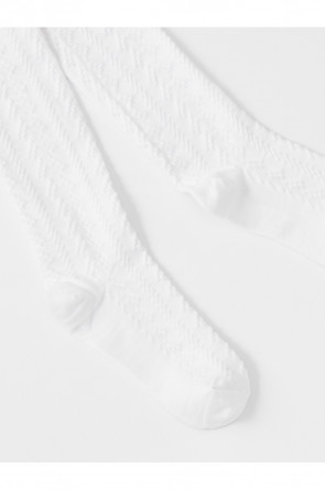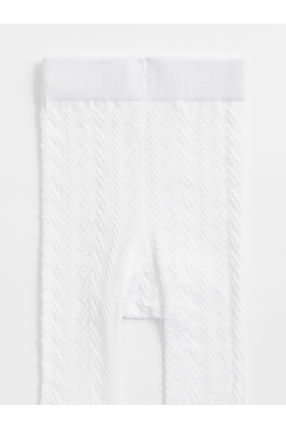 Колготки детские однотонные с формованной пяткой и эластичной резинкой в поясе. Связаны ажурным узором.