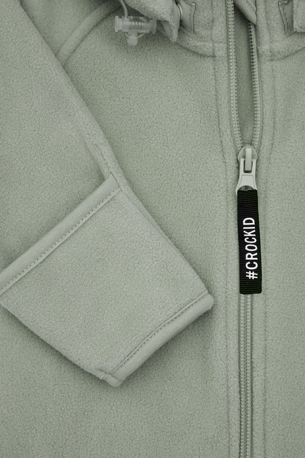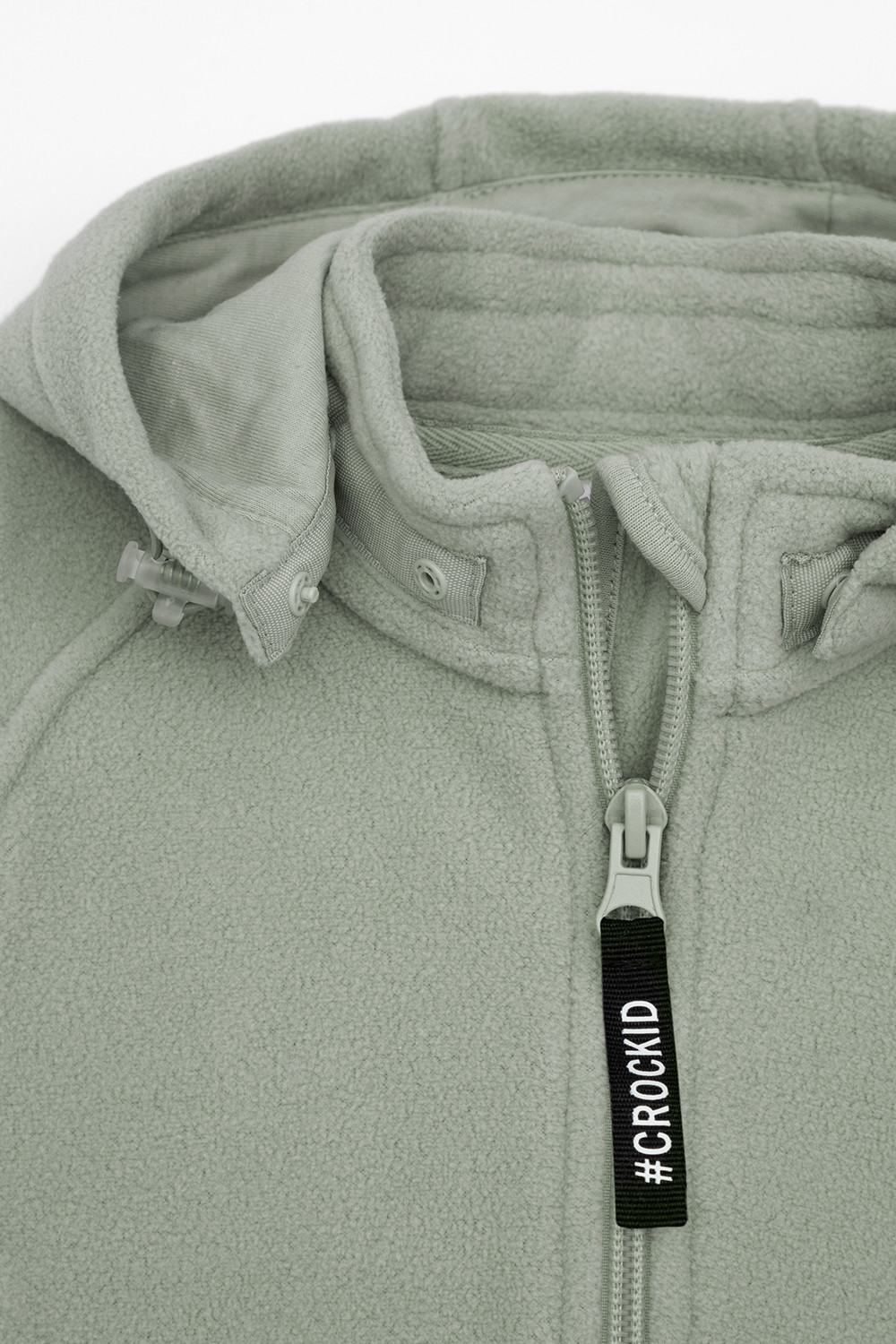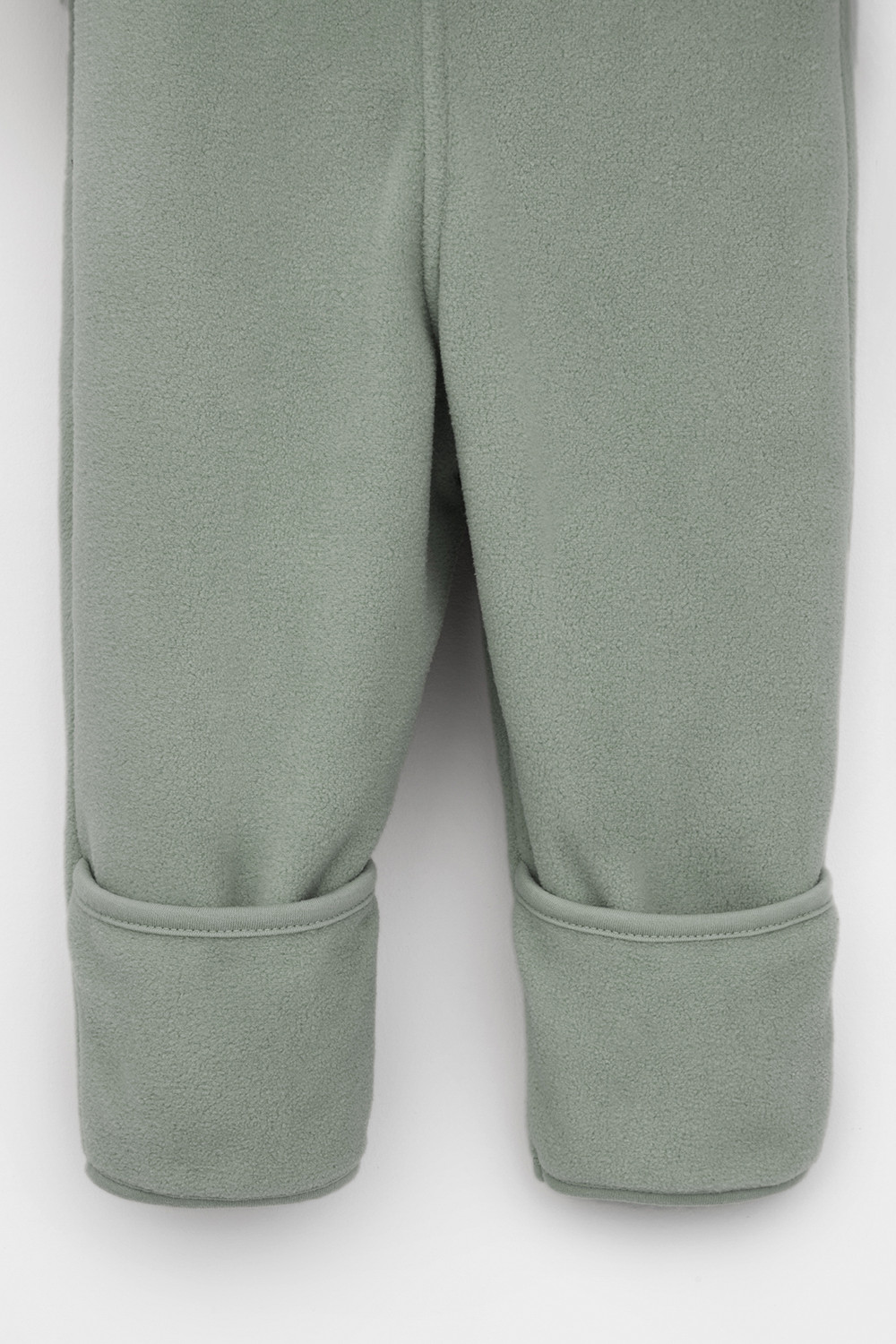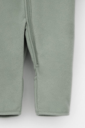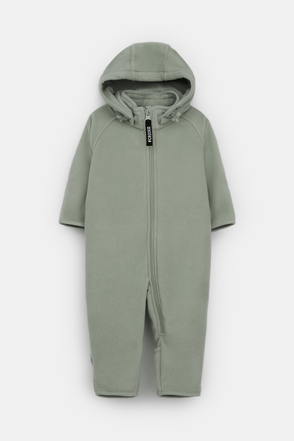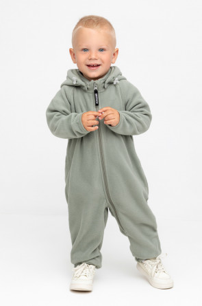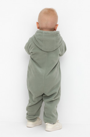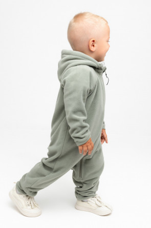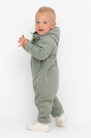 Флисовый комбинезон со съёмным капюшоном для мальчика. У изделия высокий воротник и съёмный капюшон на кнопках. Застёгивается на удлинённую молнию. Предусмотрена защита шеи и подбородка. На рукавах и штанинах есть удобные отвороты. Комбинезон сохраняет цвет и форму после многократных стирок.