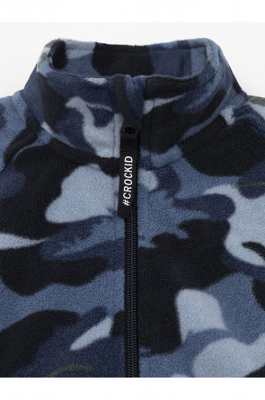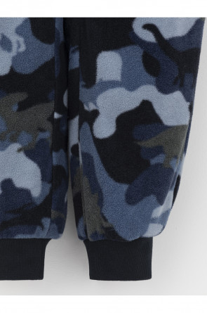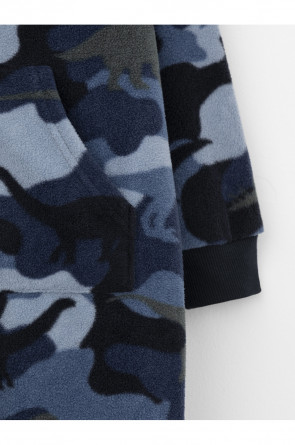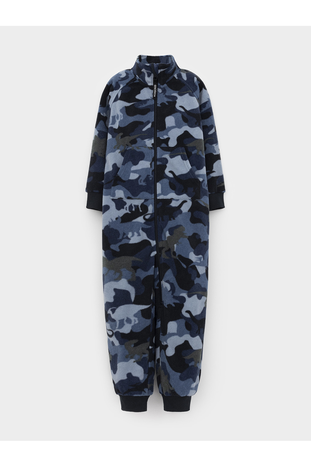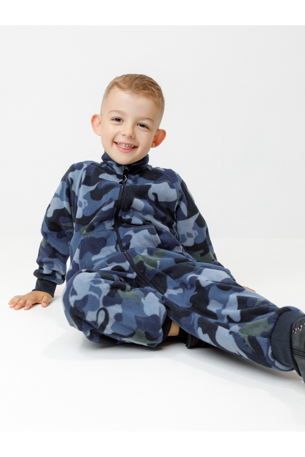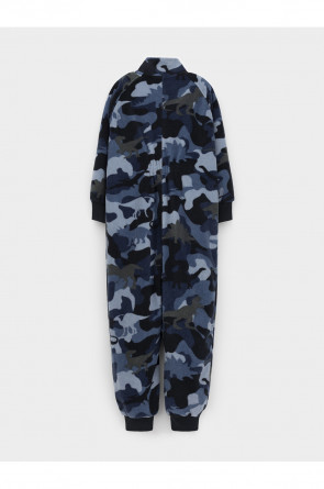 Флисовый комбинезон для мальчика с высоким воротником. Застёгивается на удлинённую молнию с мягкой защитой шеи и подбородка. Рукава и низ изделия на манжетах из трикотажа в рубчик. Эластичная резинка по спинке обеспечивает идеальную посадку. Спереди удобный карман-кенгуру. Оригинальная набивка выполнена из стойких гипоаллергенных текстильных красителей. Комбинезон сохраняет цвет и форму после многократных стирок.