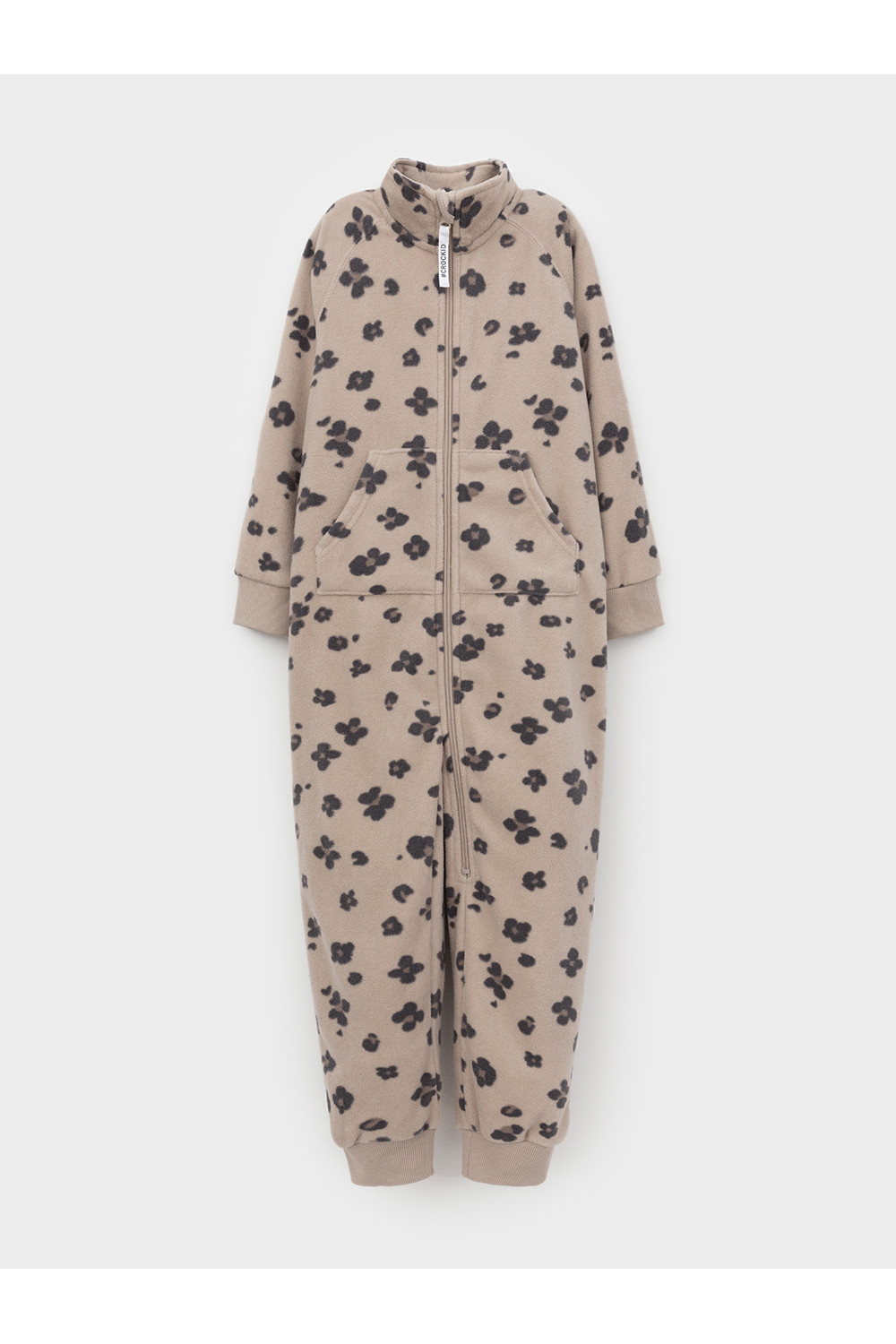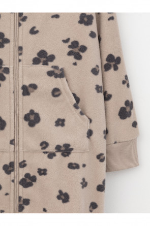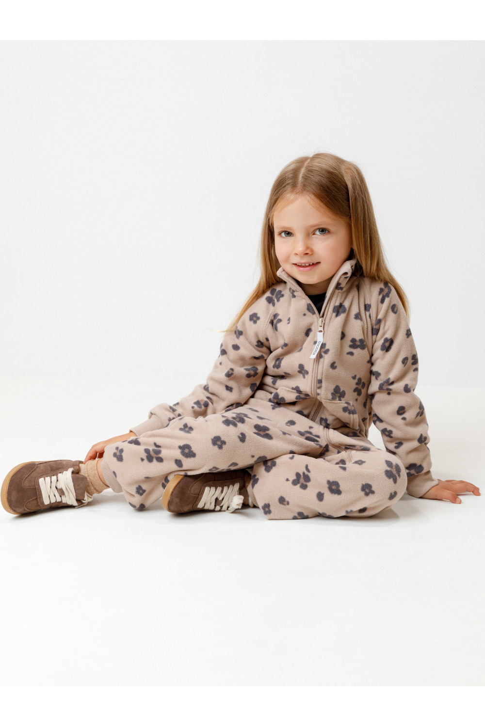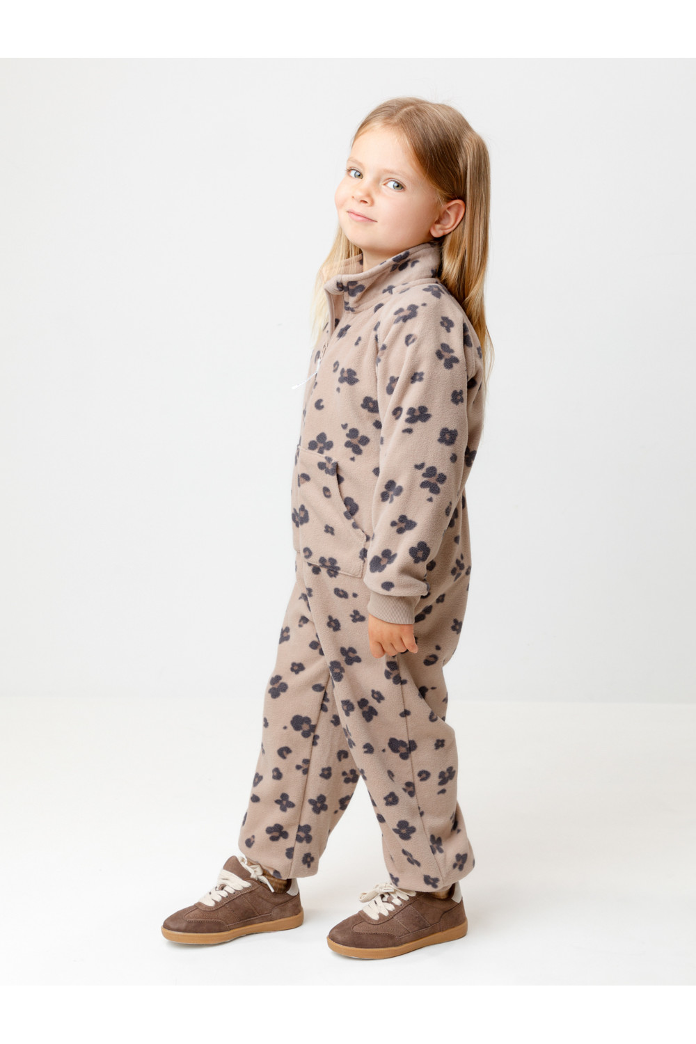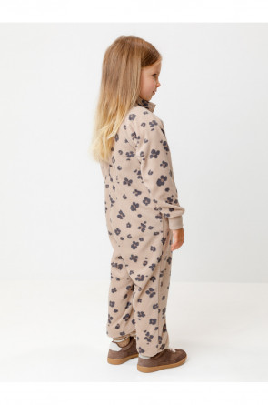 Флисовый комбинезон для девочки с высоким воротником. Застёгивается на удлинённую молнию с мягкой защитой шеи и подбородка. Рукава и низ изделия на манжетах из трикотажа в рубчик. Эластичная резинка по спинке обеспечивает идеальную посадку. Спереди удобный карман-кенгуру. Оригинальная набивка выполнена из стойких гипоаллергенных текстильных красителей. Комбинезон сохраняет цвет и форму после многократных стирок.