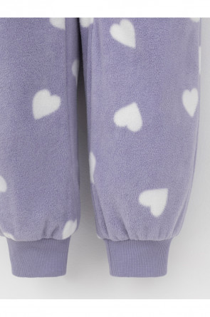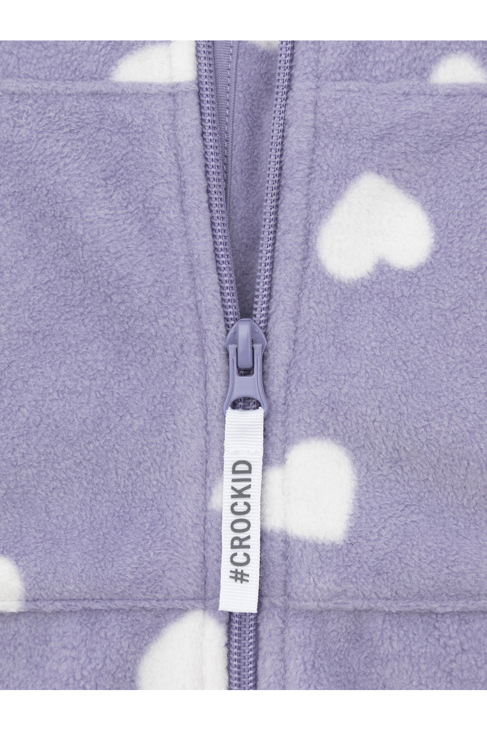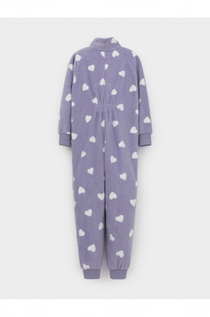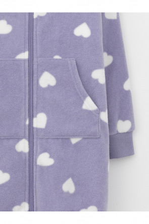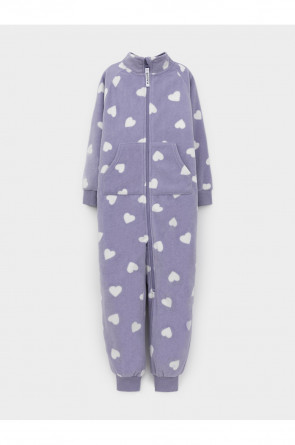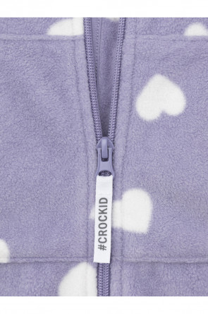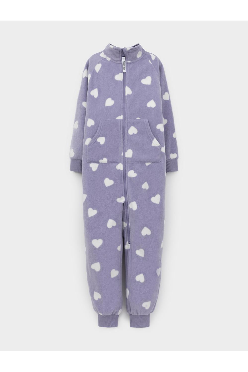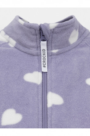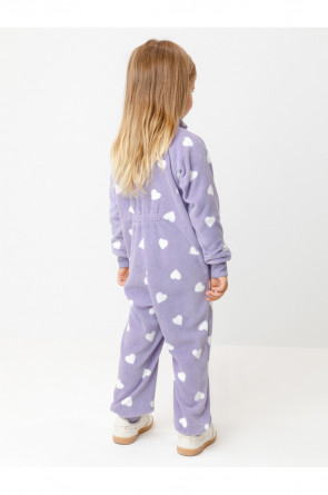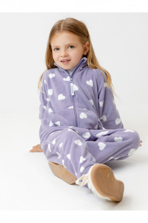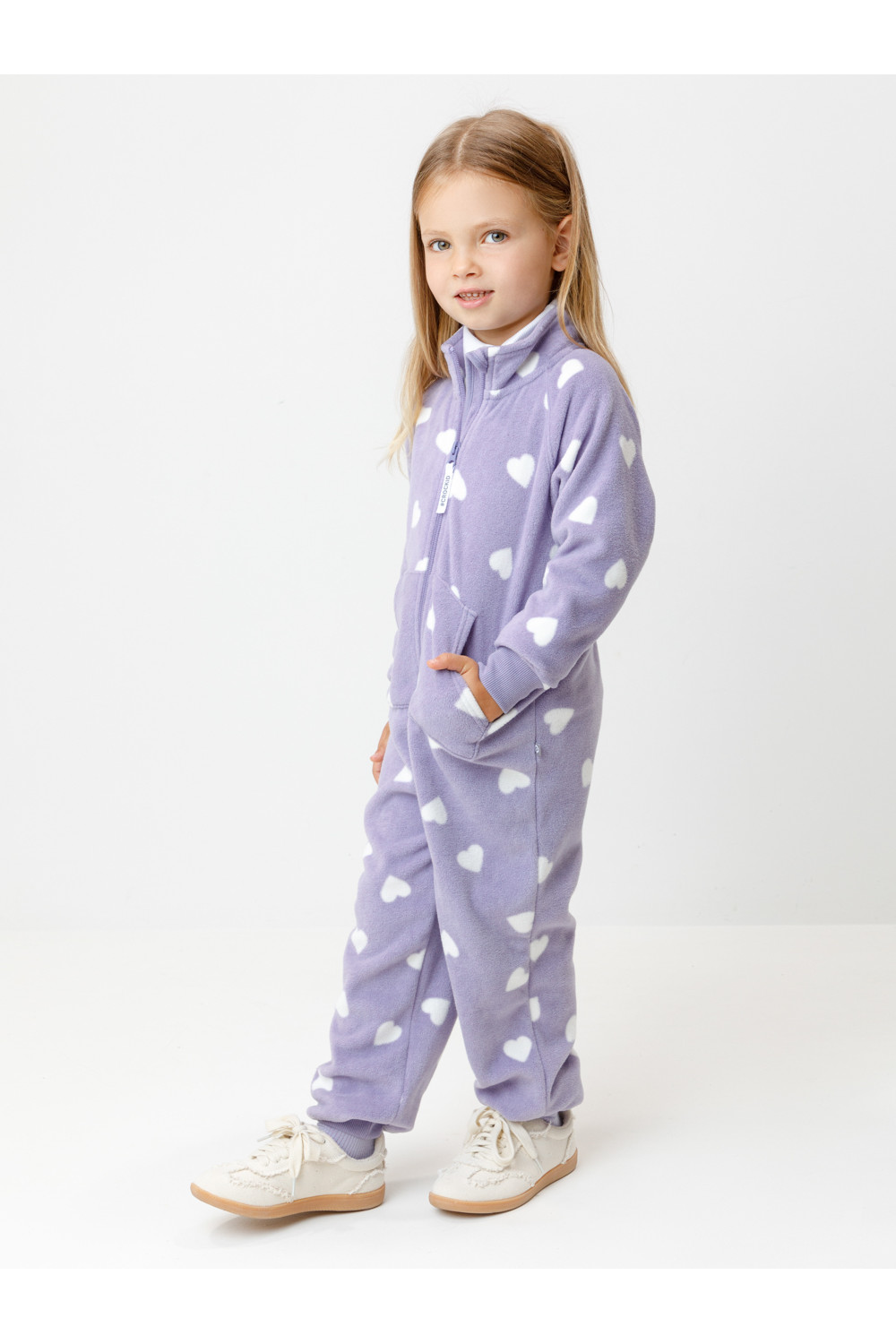 Флисовый комбинезон для девочки с высоким воротником. Застёгивается на удлинённую молнию с мягкой защитой шеи и подбородка. Рукава и низ изделия на манжетах из трикотажа в рубчик. Эластичная резинка по спинке обеспечивает идеальную посадку. Спереди удобный карман-кенгуру. Оригинальная набивка выполнена из стойких гипоаллергенных текстильных красителей. Комбинезон сохраняет цвет и форму после многократных стирок.