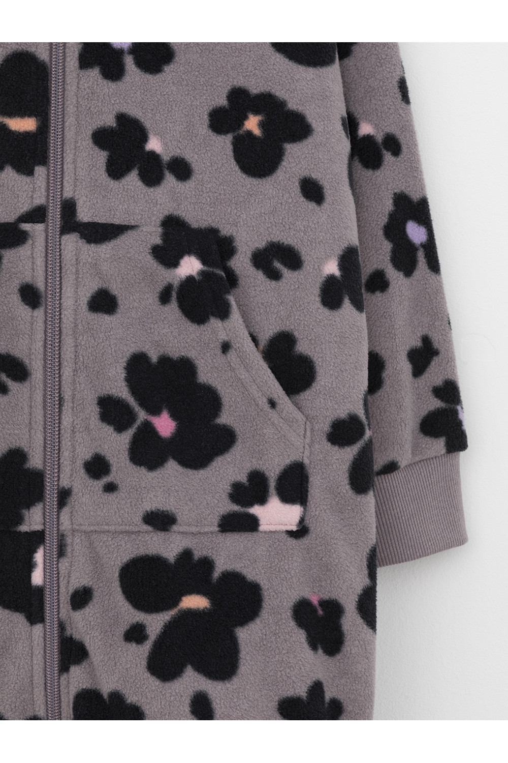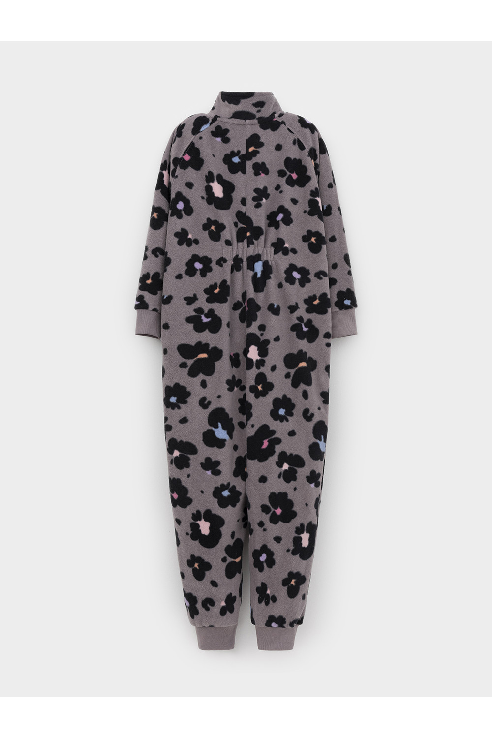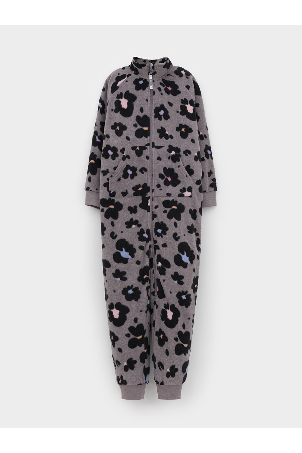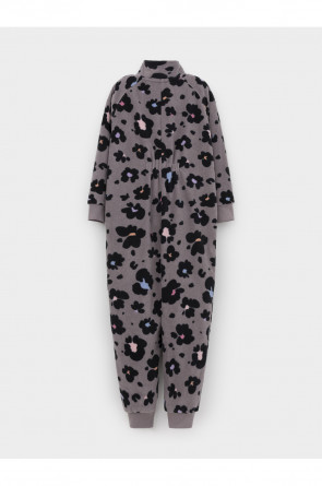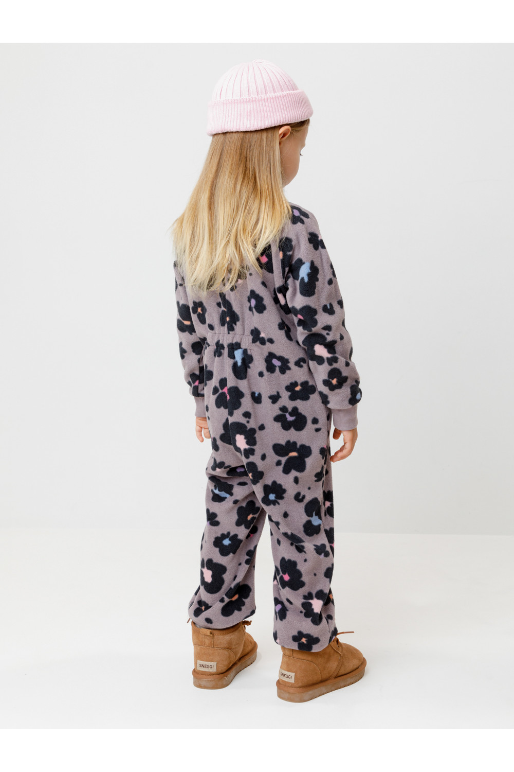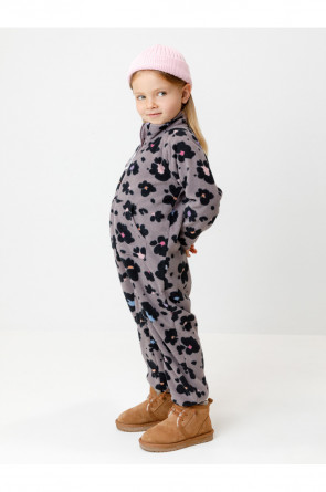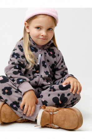 Флисовый комбинезон для девочки с высоким воротником. Застёгивается на удлинённую молнию с мягкой защитой шеи и подбородка. Рукава и низ изделия на манжетах из трикотажа в рубчик. Эластичная резинка по спинке обеспечивает идеальную посадку. Спереди удобный карман-кенгуру. Оригинальная набивка выполнена из стойких гипоаллергенных текстильных красителей. Комбинезон сохраняет цвет и форму после многократных стирок.