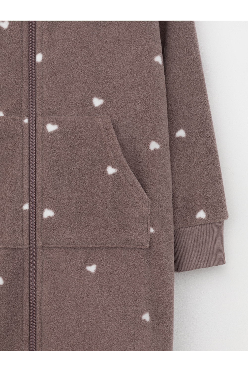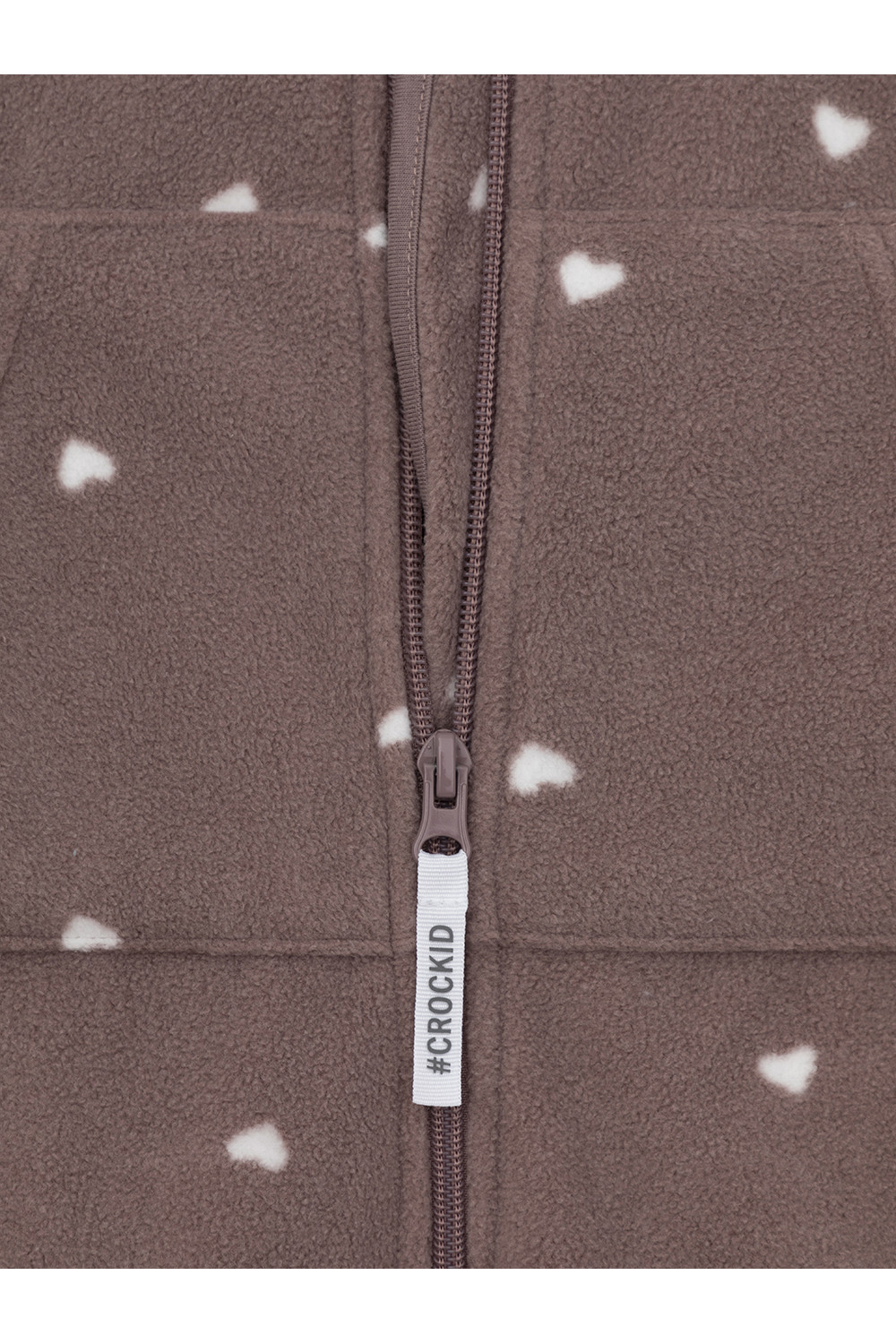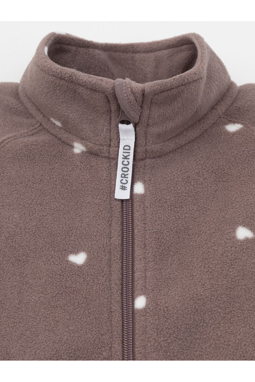 Флисовый комбинезон для девочки с высоким воротником. Застёгивается на удлинённую молнию с мягкой защитой шеи и подбородка. Рукава и низ изделия на манжетах из трикотажа в рубчик. Эластичная резинка по спинке обеспечивает идеальную посадку. Спереди удобный карман-кенгуру. Оригинальная набивка выполнена из стойких гипоаллергенных текстильных красителей. Комбинезон сохраняет цвет и форму после многократных стирок.