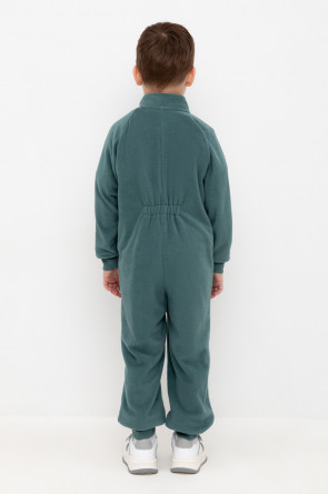Флисовый комбинезон для мальчика. У изделия высокий воротник и рукава-реглан. Застёгивается на удлинённую молнию. Предусмотрена защита шеи и подбородка. Спереди карман-кенгуру. Комбинезон сохраняет цвет и форму после многократных стирок.
