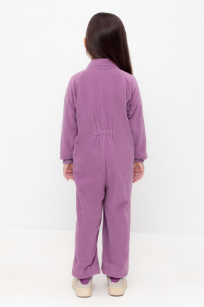 Флисовый комбинезон для девочки. У изделия высокий воротник и рукава-реглан. Застёгивается на удлинённую молнию. Предусмотрена защита шеи и подбородка. Спереди карман-кенгуру. Комбинезон сохраняет цвет и форму после многократных стирок.