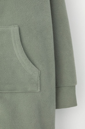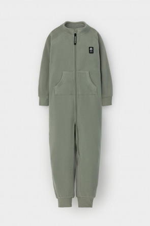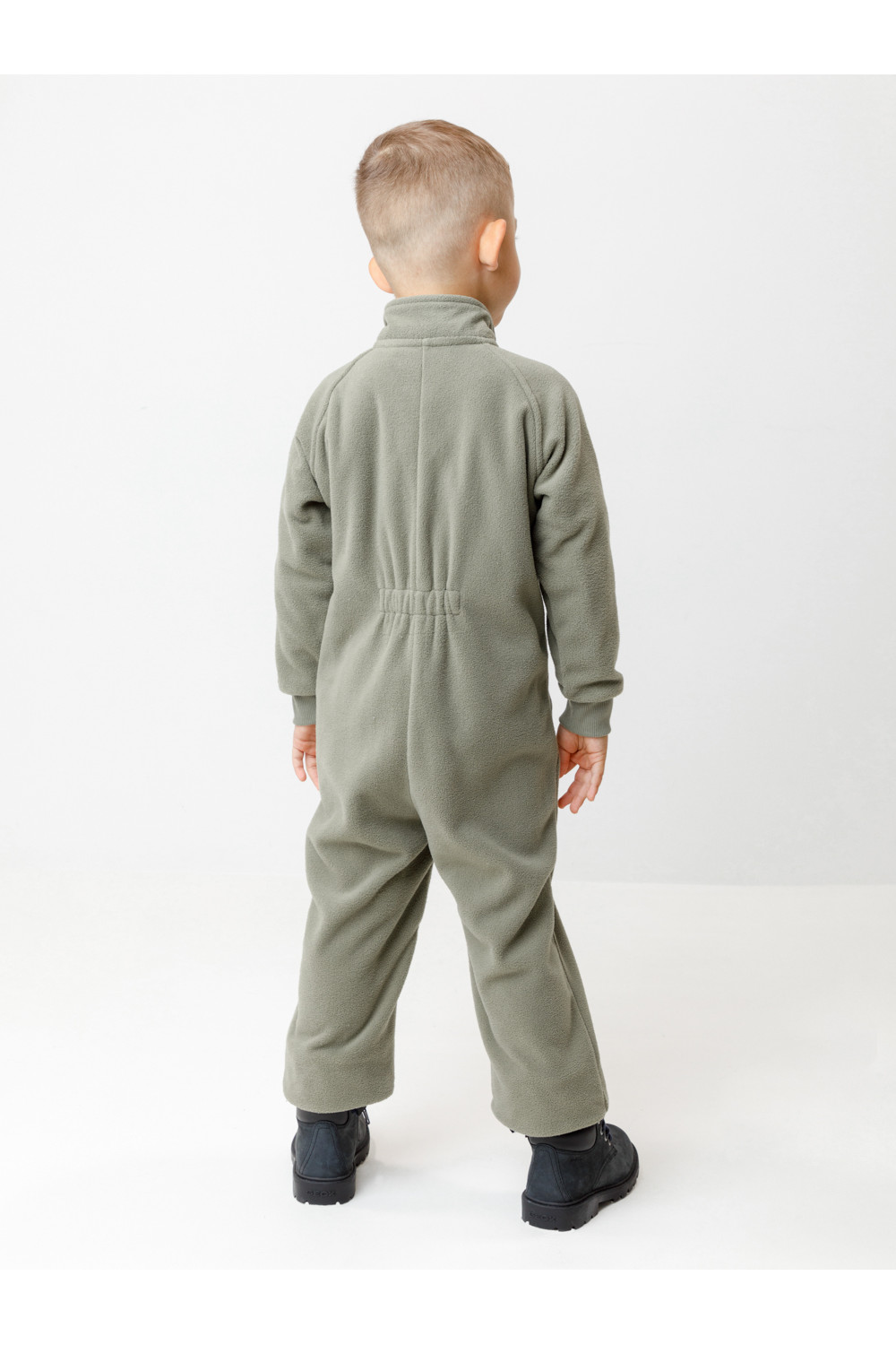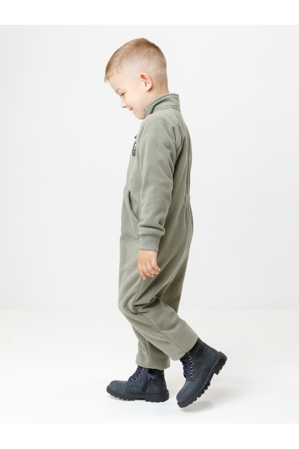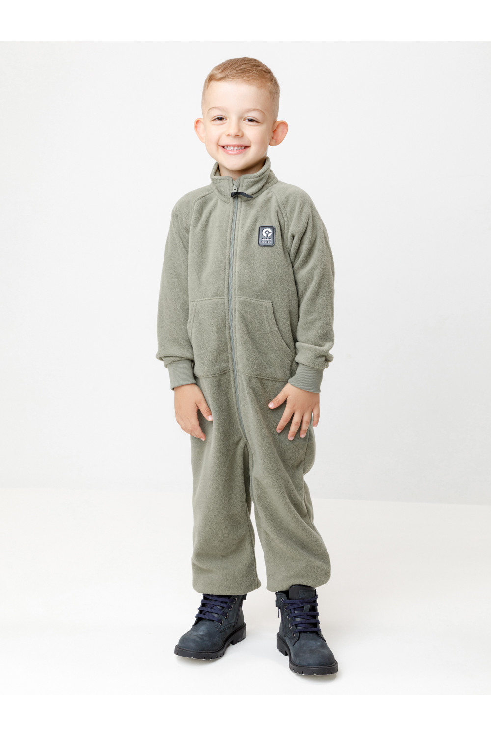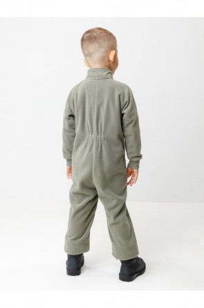 Однотонный флисовый комбинезон для мальчика с высоким воротником. Застёгивается на удлинённую молнию с мягкой защитой шеи и подбородка. Рукава и низ изделия на манжетах из трикотажа в рубчик. Эластичная резинка по спинке обеспечивает идеальную посадку. Спереди удобный карман-кенгуру. Комбинезон сохраняет цвет и форму после многократных стирок.