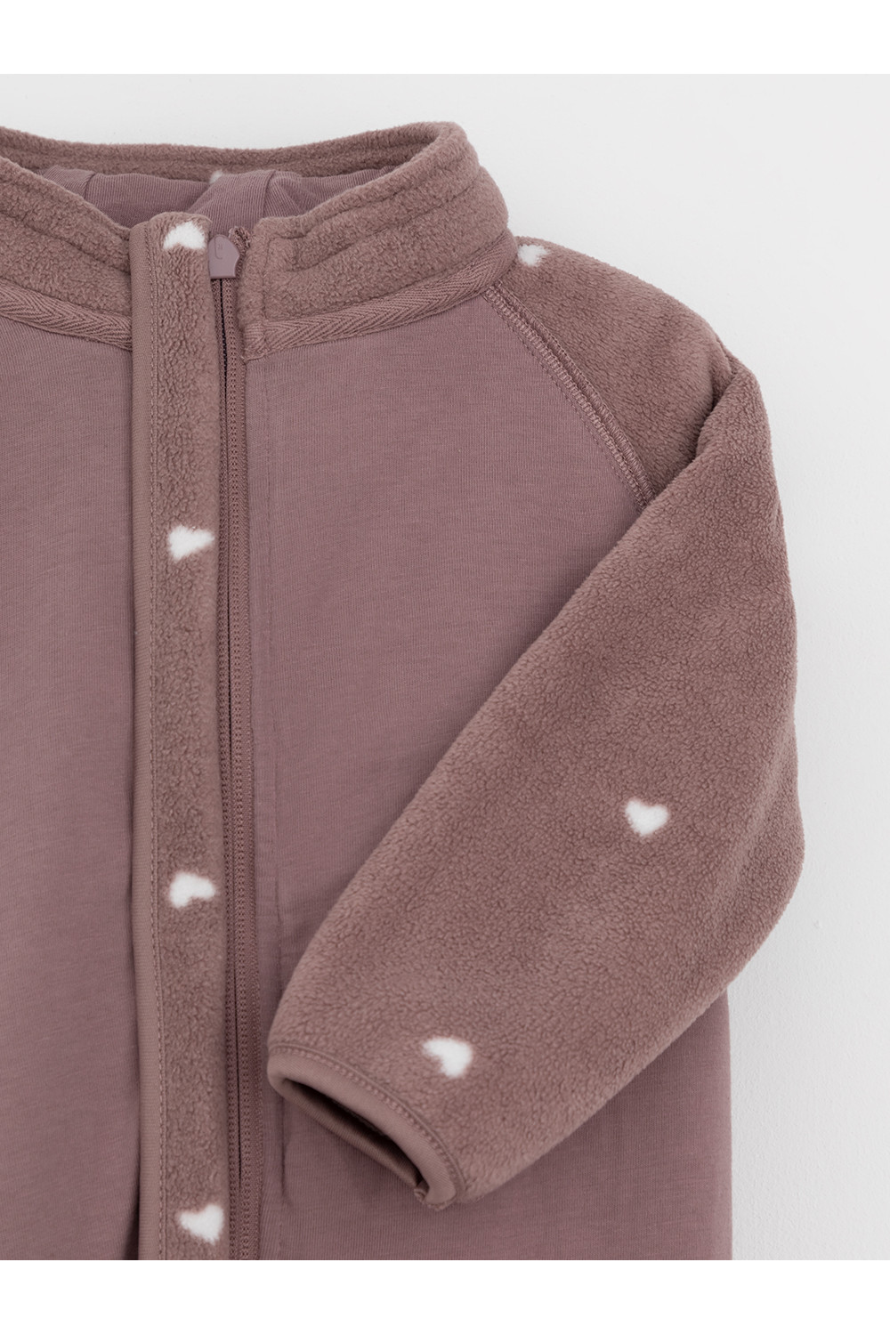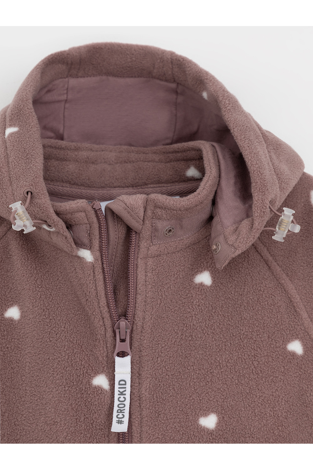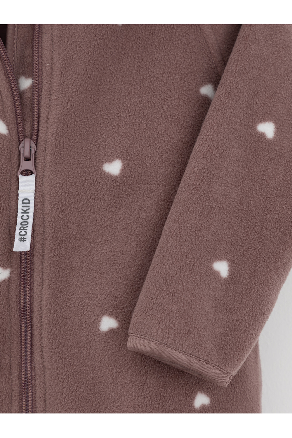 Флисовый комбинезон для девочки со съёмным капюшоном. Капюшон регулируется по ширине с помощью эластичной утяжки со стопперами. Подклад выполнен из гладкого трикотажа супрем, произведённого из высококачественного натурального хлопка. Застёгивается на удлинённую молнию с мягкой защитой шеи и подбородка. В размерах 62, 68 и 74 на рукавах и ножках есть отвороты. Оригинальная набивка выполнена из стойких, гипоаллергенных текстильных красителей. Комбинезон сохраняет цвет и форму после многократных стирок.