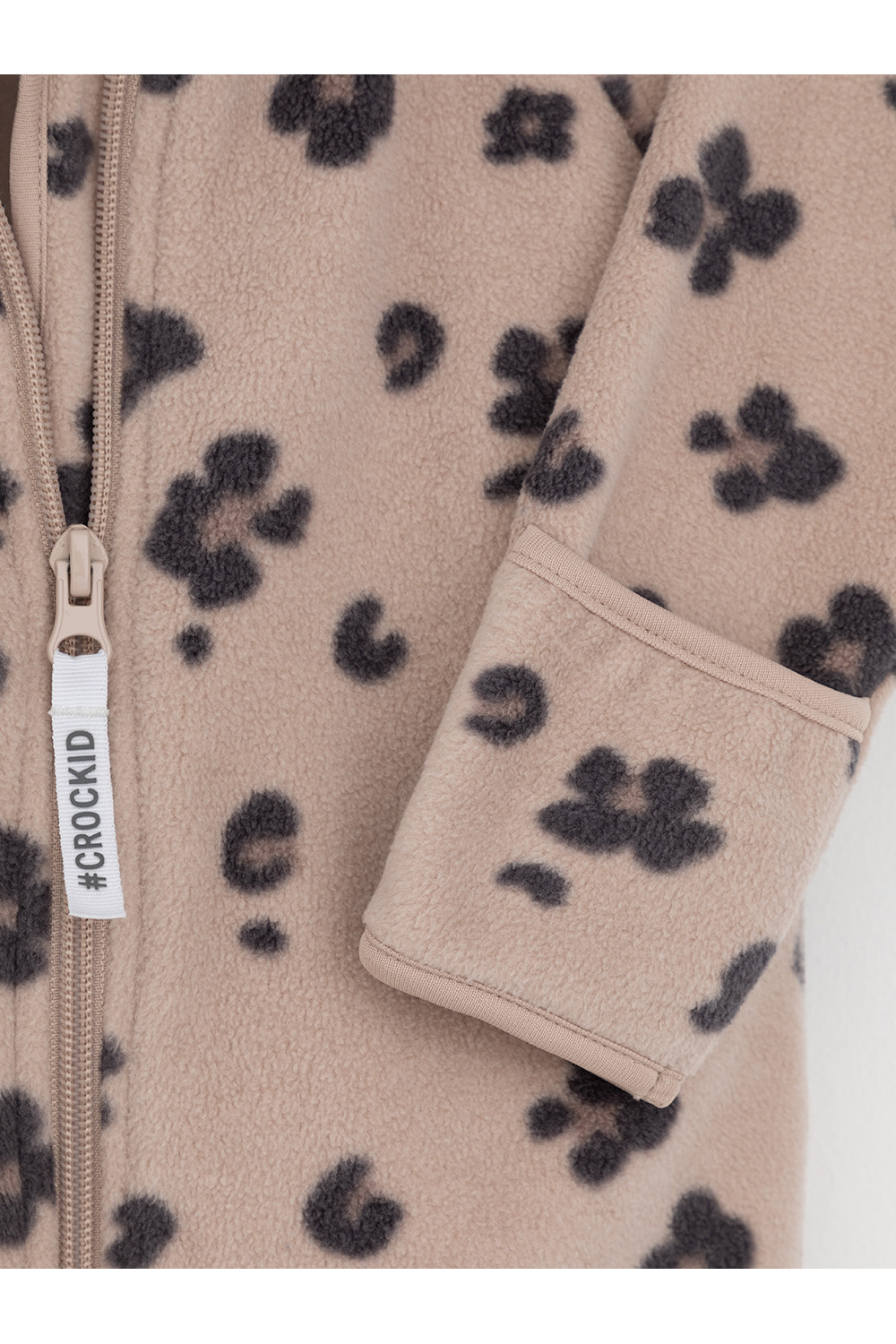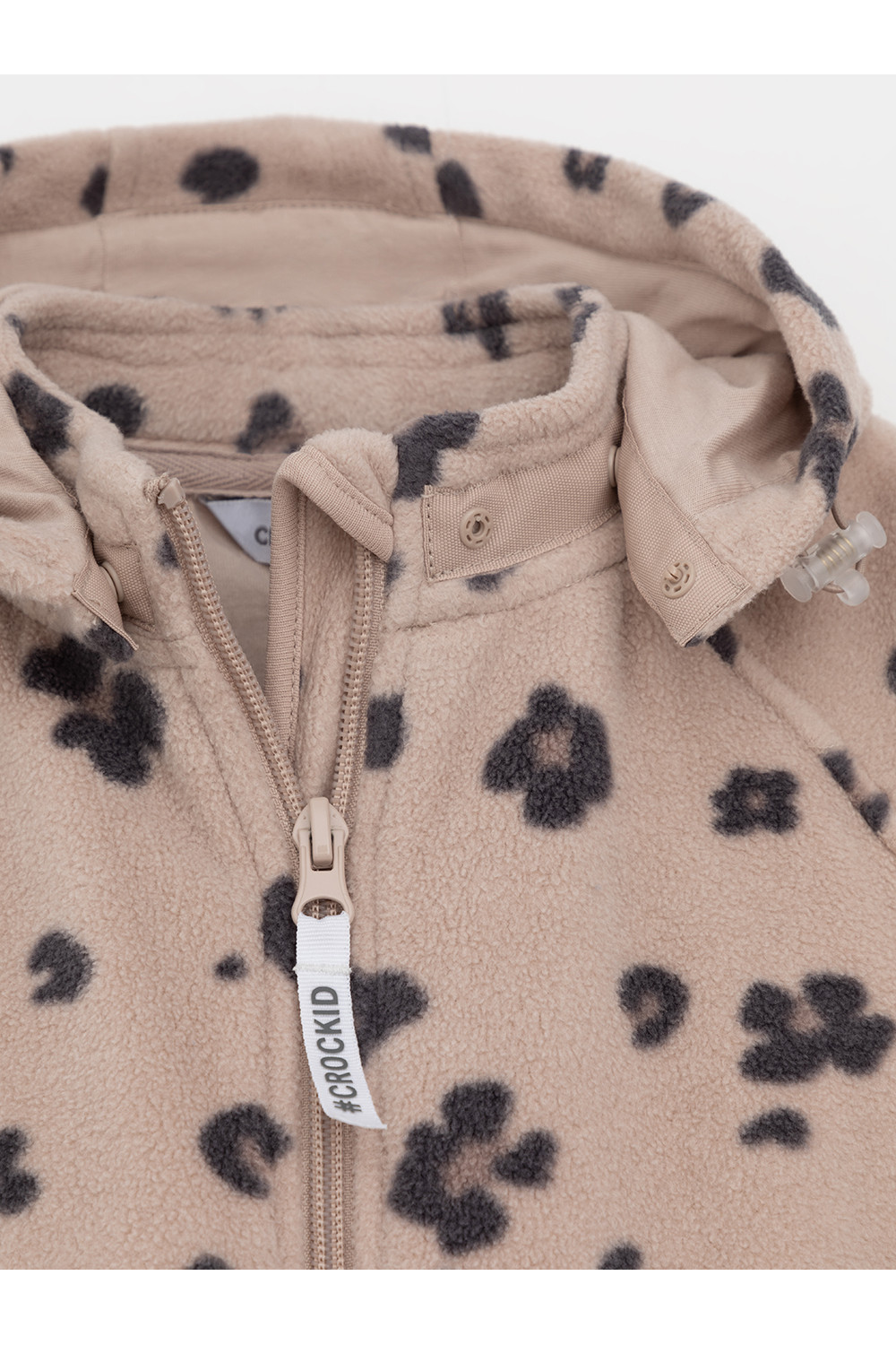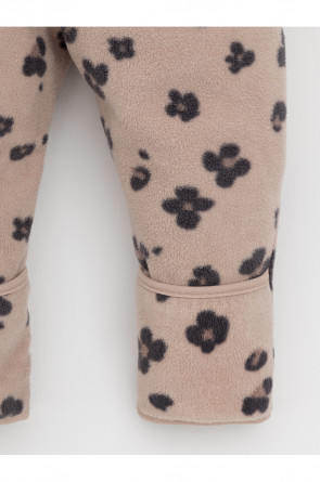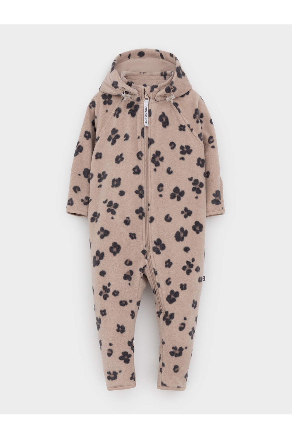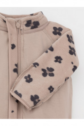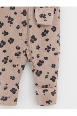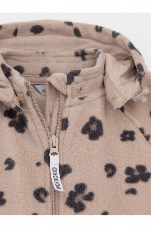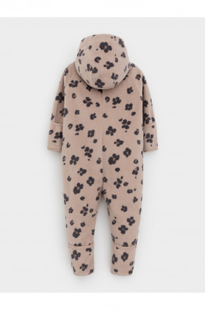 Флисовый комбинезон для девочки со съёмным капюшоном. Капюшон регулируется по ширине с помощью эластичной утяжки со стопперами. Подклад выполнен из гладкого трикотажа супрем, произведённого из высококачественного натурального хлопка. Застёгивается на удлинённую молнию с мягкой защитой шеи и подбородка. В размерах 62, 68 и 74 на рукавах и ножках есть отвороты. Оригинальная набивка выполнена из стойких, гипоаллергенных текстильных красителей. Комбинезон сохраняет цвет и форму после многократных стирок.