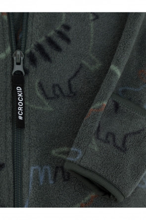 Флисовый комбинезон для мальчика со съёмным капюшоном. Капюшон регулируется по ширине с помощью эластичной утяжки со стопперами. Подклад выполнен из гладкого трикотажа супрем, произведённого из высококачественного натурального хлопка. Застёгивается на удлинённую молнию с мягкой защитой шеи и подбородка. В размерах 62, 68 и 74 на рукавах и ножках есть отвороты. Оригинальная набивка выполнена из стойких гипоаллергенных текстильных красителей. Комбинезон сохраняет цвет и форму после многократных стирок.