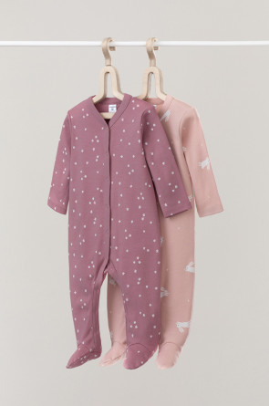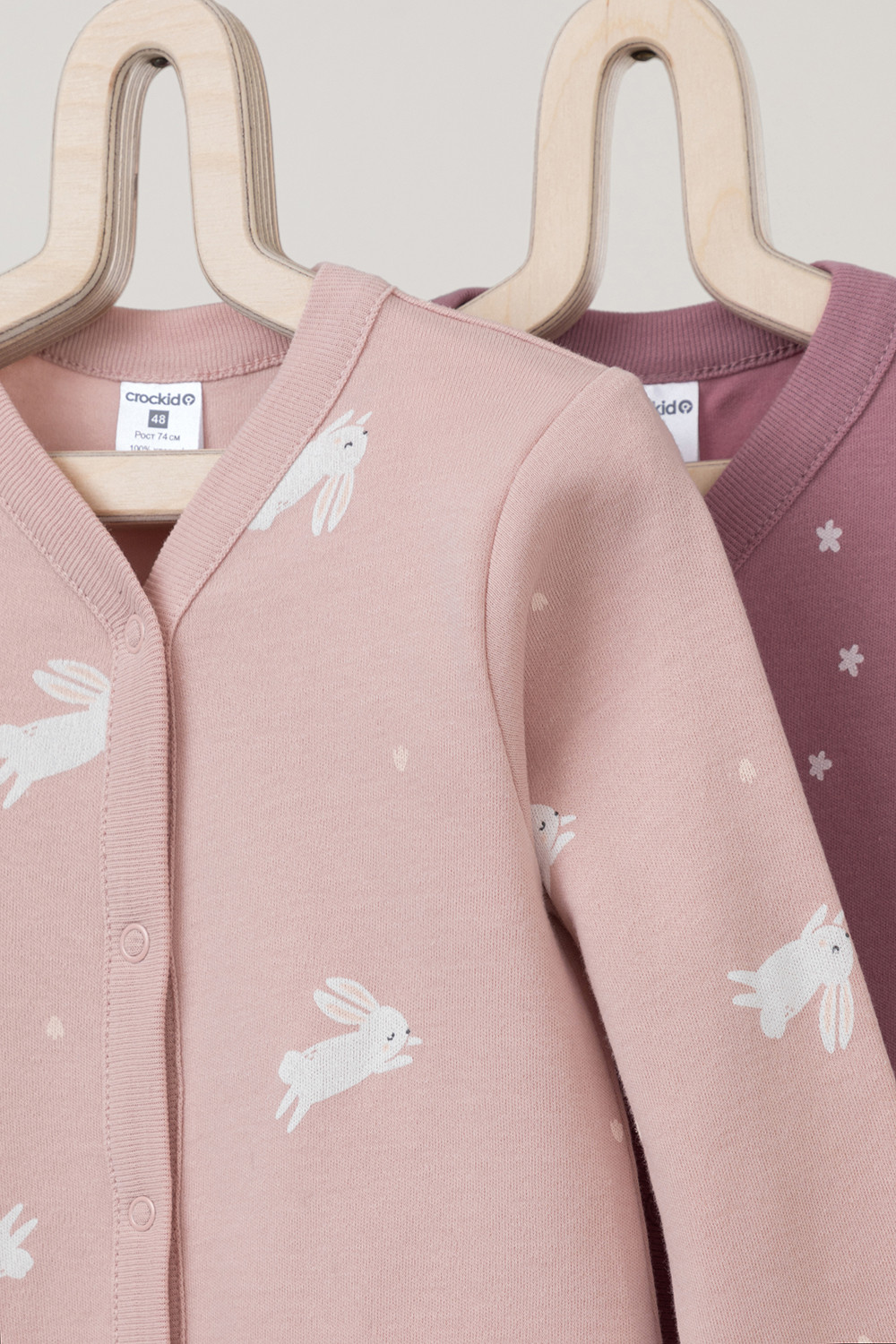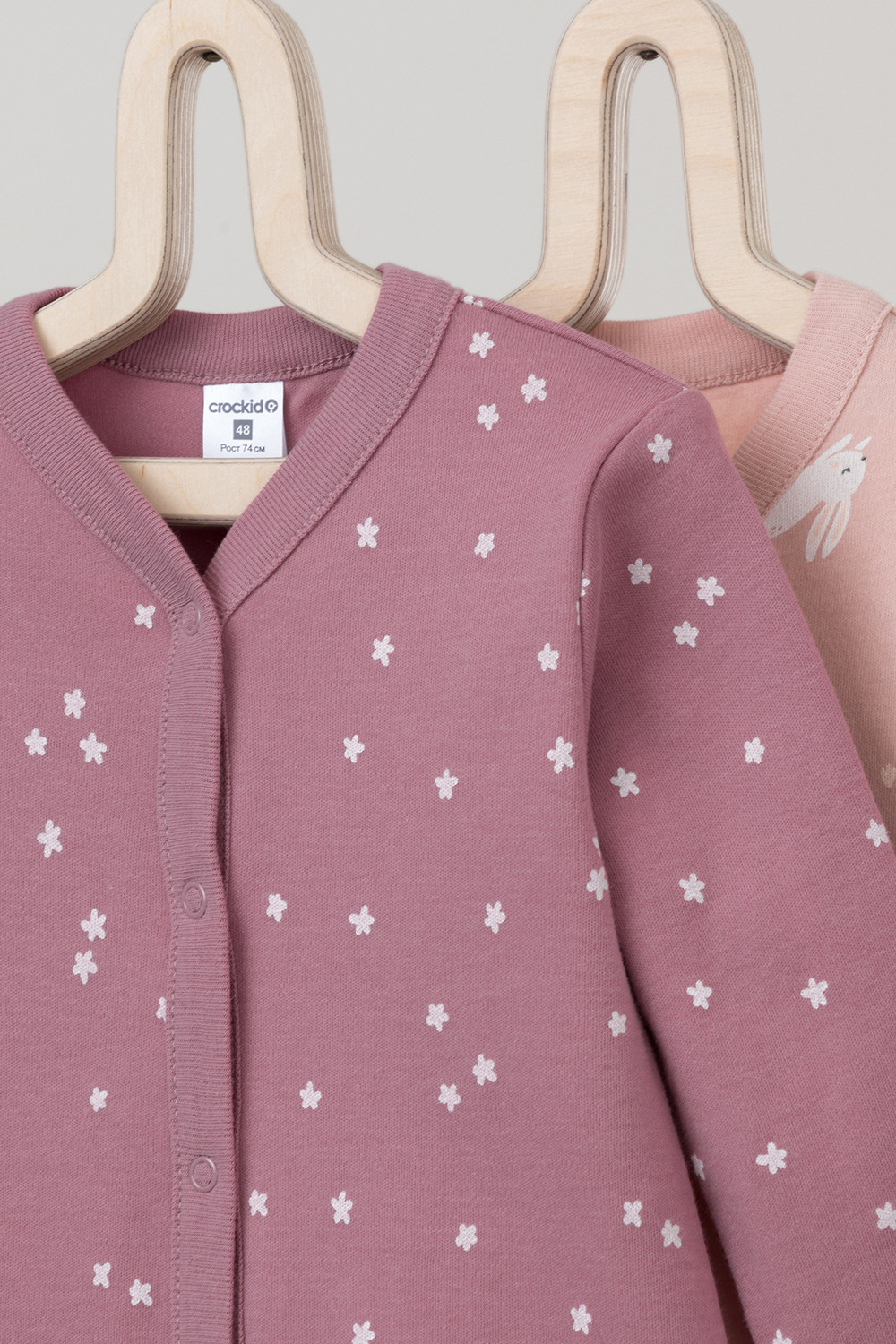 Комбинезоны для новорождённых из мягкого эластичного трикотажа интерлок, произведённого из натурального хлопка. В упаковке 2 штуки. Застёгиваются спереди на кнопки. В размере 56 на рукавах предусмотрены антицарапки, швы выполнены наружу. Оригинальная набивка выполнена из стойких гипоаллергенных текстильных красителей. Все трикотажные полотна производятся в соответствии с нормами Швейцарского сертификата ЭкоТекс.