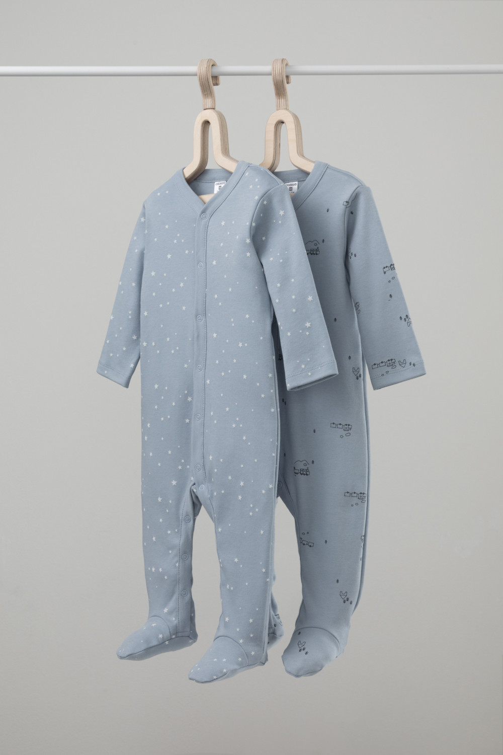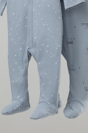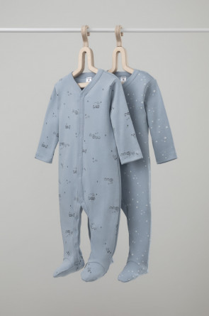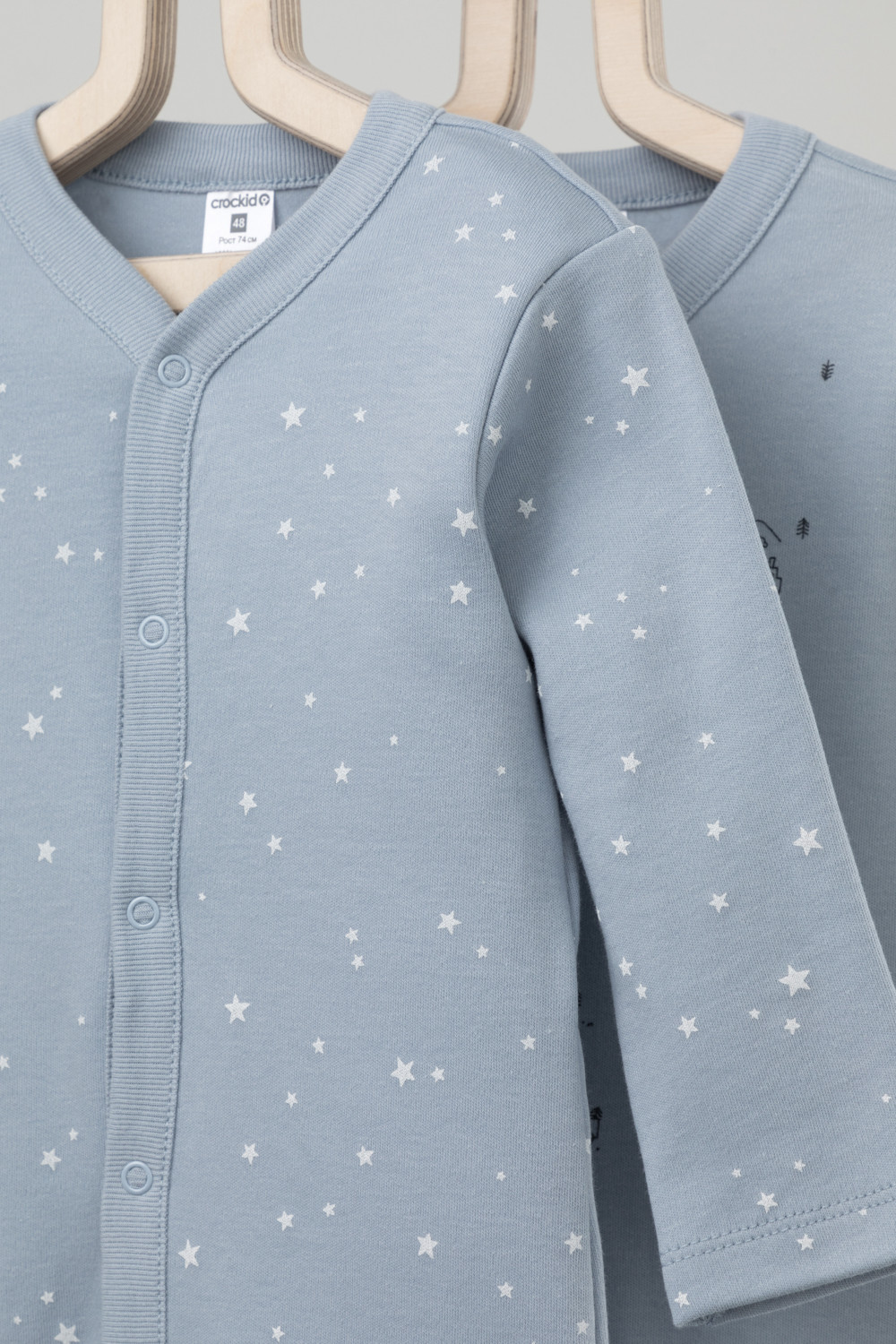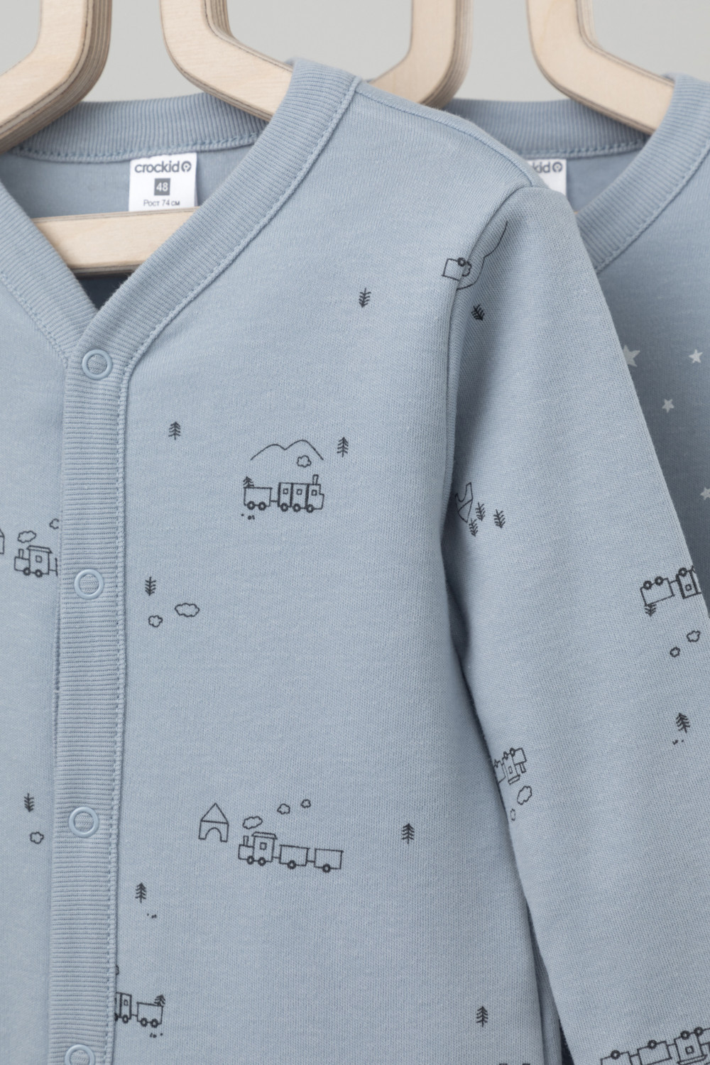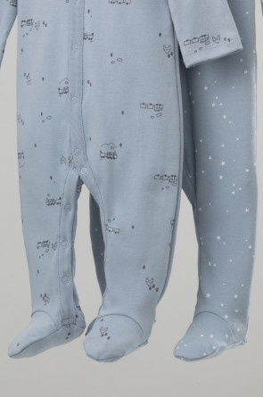 Комбинезоны в упаковке 2 шт для новорожденных из мягкого, эластичного трикотажа, произведенного из натурального хлопка. Изделие застегивается на кнопки. В размере 56 на рукавах предусмотрены антицарапки, швы выполнены наружу. Оригинальная набивка выполнена из стойких, гипоаллергенных текстильных красителей. Все трикотажные полотна производятся в соответсвии с нормами Швейцарского сертификата ЭкоТекс.