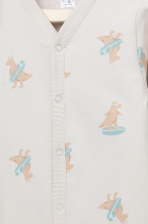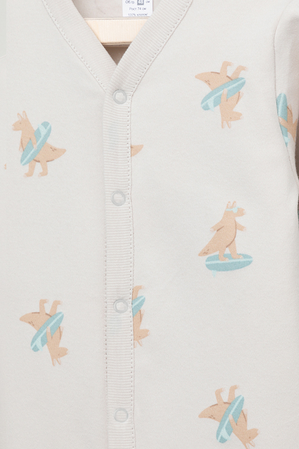 Комбинезон для новорожденных из мягкого, эластичного трикотажа, произведенного из натурального хлопка. Изделие застегивается на кнопки. В размере 56 на рукавах предусмотрены антицарапки, швы выполнены наружу. Оригинальная набивка выполнена из стойких, гипоаллергенных текстильных красителей. Все трикотажные полотна производятся в соответсвии с нормами Швейцарского сертификата ЭкоТекс.