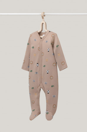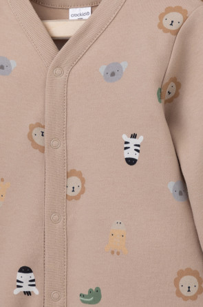Комбинезон для новорожденных из мягкого, эластичного трикотажа, произведенного из натурального хлопка. Изделие застегивается на кнопки. В размере 56 на рукавах предусмотрены антицарапки, швы выполнены наружу. Оригинальная набивка выполнена из стойких, гипоаллергенных текстильных красителей. Все трикотажные полотна производятся в соответсвии с нормами Швейцарского сертификата ЭкоТекс.