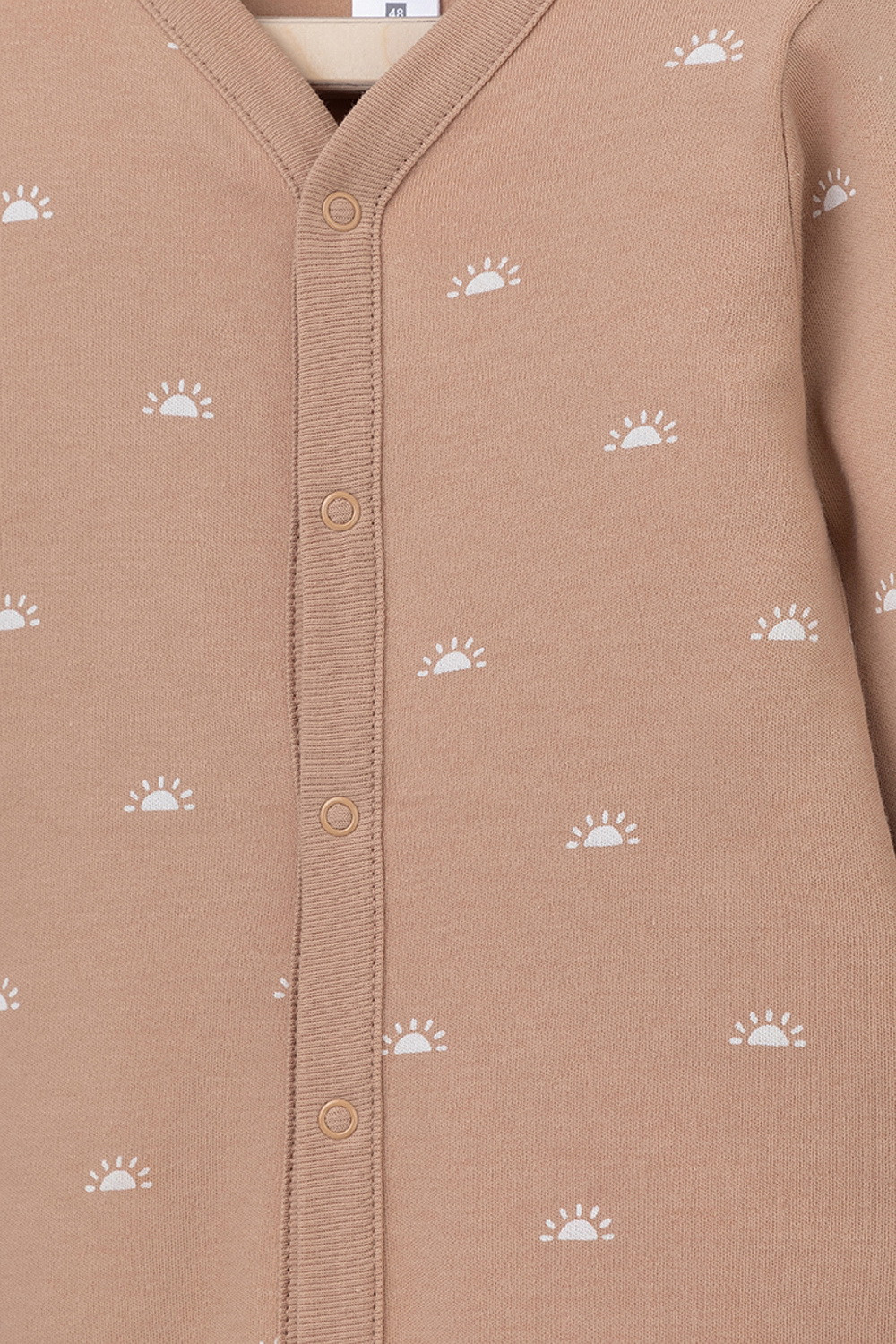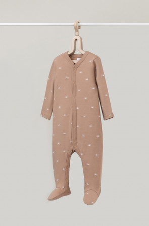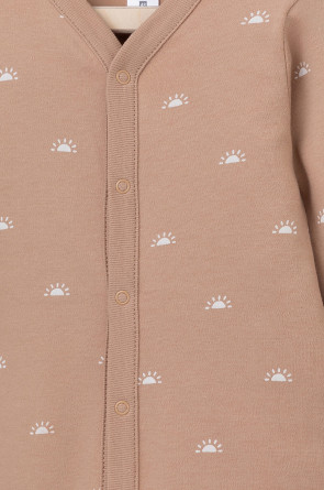 Комбинезон для новорожденных из мягкого, эластичного трикотажа, произведенного из натурального хлопка. Изделие застегивается на кнопки. В размере 56 на рукавах предусмотрены антицарапки, швы выполнены наружу. Оригинальная набивка выполнена из стойких, гипоаллергенных текстильных красителей. Все трикотажные полотна производятся в соответсвии с нормами Швейцарского сертификата ЭкоТекс.