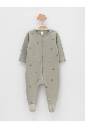 Комбинезон для новорождённых из тонкого футера с начёсом, произведённого из натурального хлопка. Застёгиваются спереди на молнию с мягкой защитой шеи и подбородка. Оригинальная набивка выполнена из стойких гипоаллергенных текстильных красителей. Все трикотажные полотна производятся в соответствии с нормами швейцарского сертификата ЭкоТекс.