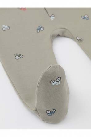 Комбинезон для новорождённых из тонкого футера с начёсом, произведённого из натурального хлопка. Застёгиваются спереди на молнию с мягкой защитой шеи и подбородка. Оригинальная набивка выполнена из стойких гипоаллергенных текстильных красителей. Все трикотажные полотна производятся в соответствии с нормами швейцарского сертификата ЭкоТекс.