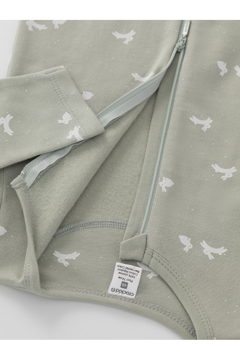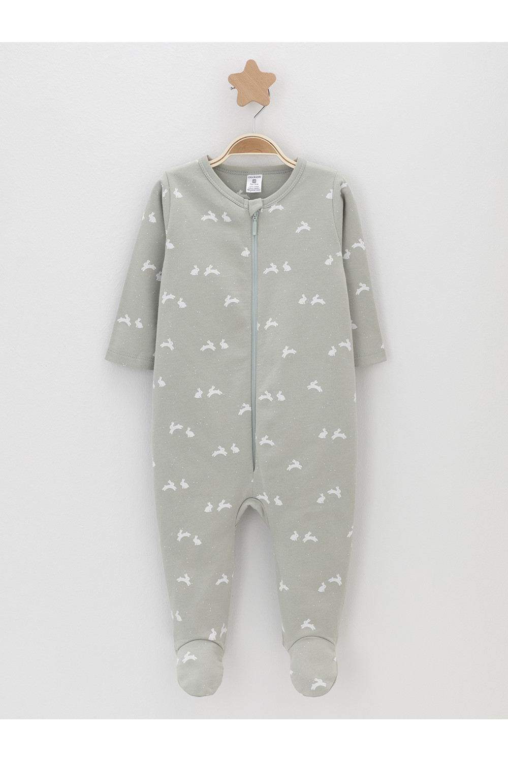 Комбинезон для новорождённых из тонкого футера с начёсом, произведённого из натурального хлопка. Застёгивается спереди на молнию с мягкой защитой шеи и подбородка. Оригинальная набивка выполнена из стойких гипоаллергенных текстильных красителей. Все трикотажные полотна производятся в соответствии с нормами швейцарского сертификата ЭкоТекс.