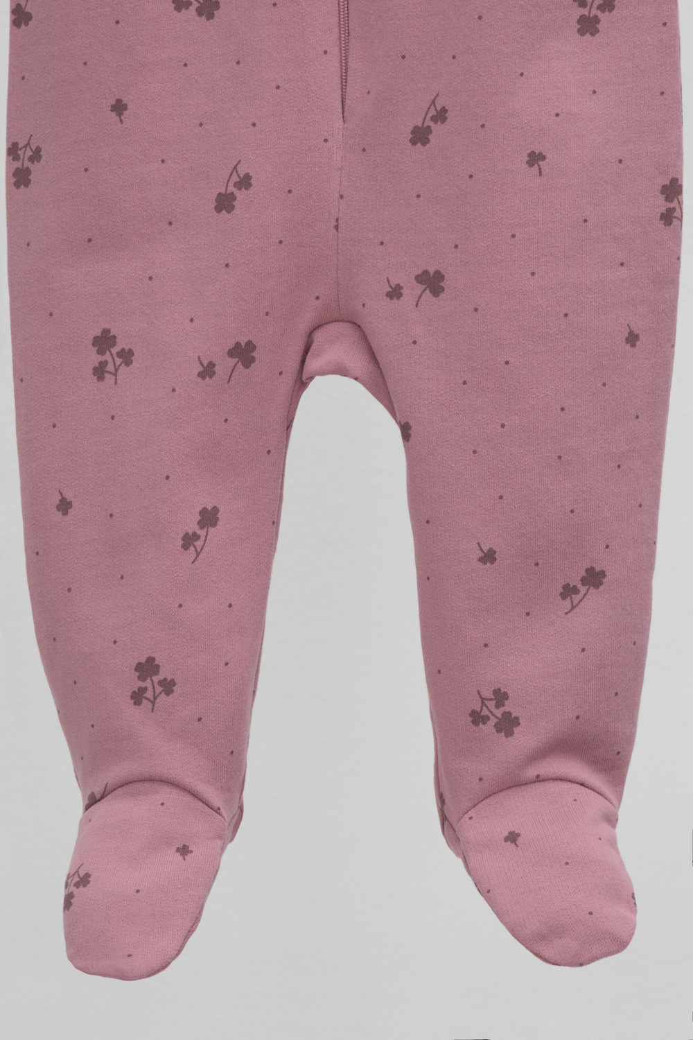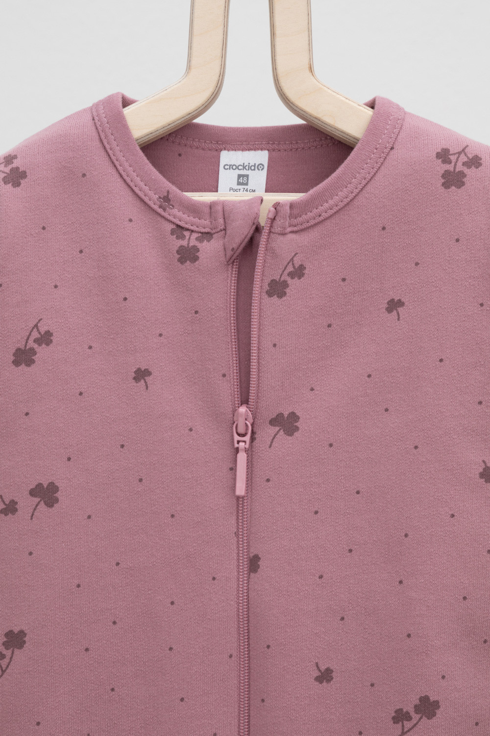Комбинезон для новорождённых из тонкого трикотажа с начёсом, произведённого из натурального хлопка. Изделие застёгивается спереди на молнию. Оригинальная набивка выполнена из стойких, гипоаллергенных текстильных красителей. Все трикотажные полотна производятся в соответствии с нормами Швейцарского сертификата ЭкоТекс.