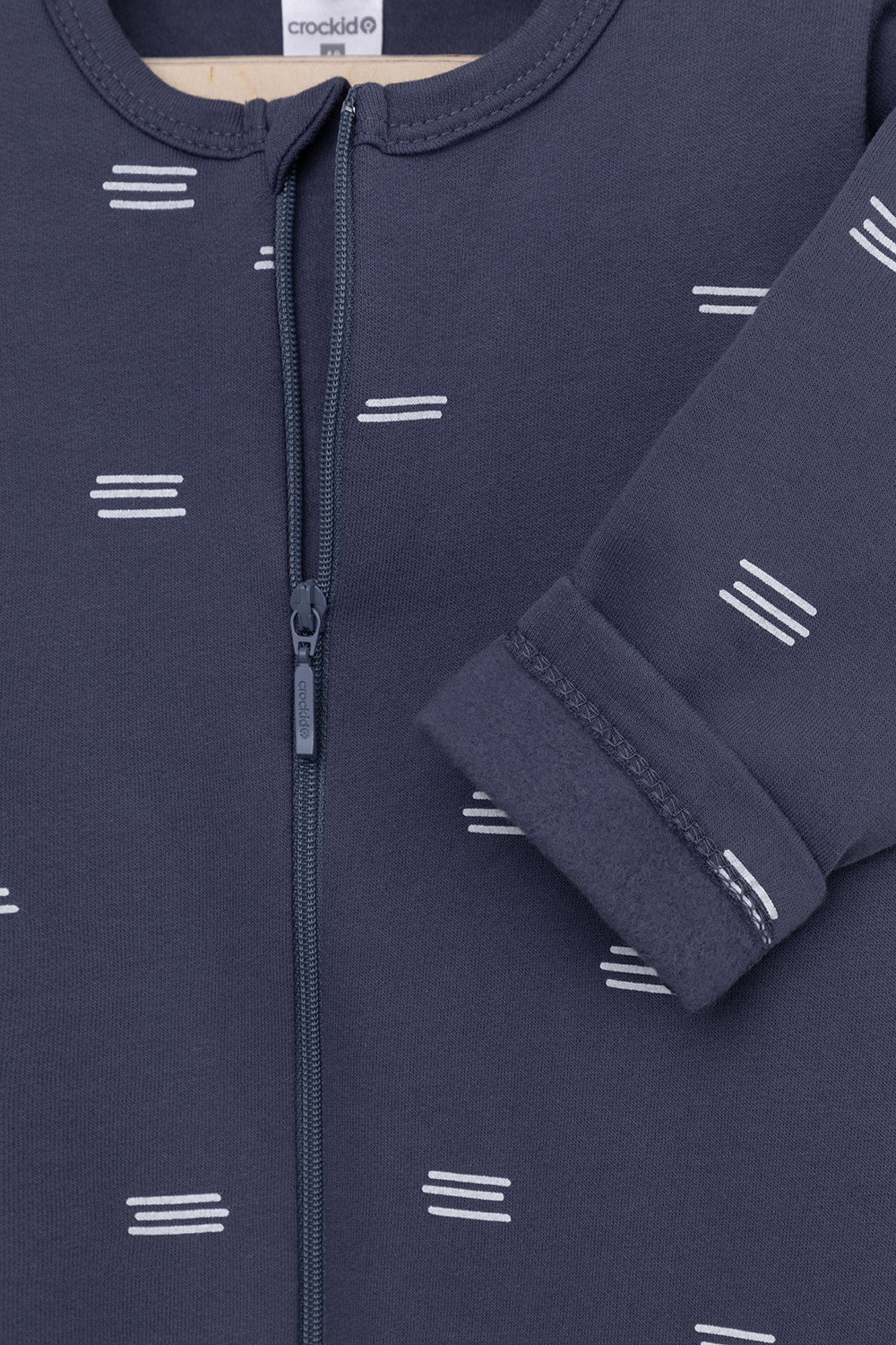 Комбинезон для новорождённых из тонкого трикотажа с начёсом, произведённого из натурального хлопка. Застёгивается спереди на молнию с защитой подбородка. В размере 56 на рукавах предусмотрены антицарапки, швы выполнены наружу. Оригинальная набивка выполнена из стойких гипоаллергенных текстильных красителей. Все трикотажные полотна производятся в соответствии с нормами Швейцарского сертификата ЭкоТекс.