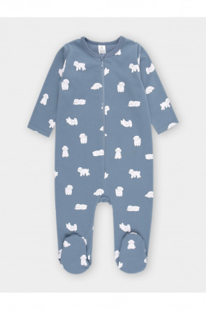 Комбинезон для новорождённых из тонкого футера с начёсом, произведённого из натурального хлопка. Застёгиваются спереди на молнию с мягкой защитой шеи и подбородка. Оригинальная набивка выполнена из стойких гипоаллергенных текстильных красителей. Все трикотажные полотна производятся в соответствии с нормами швейцарского сертификата ЭкоТекс.