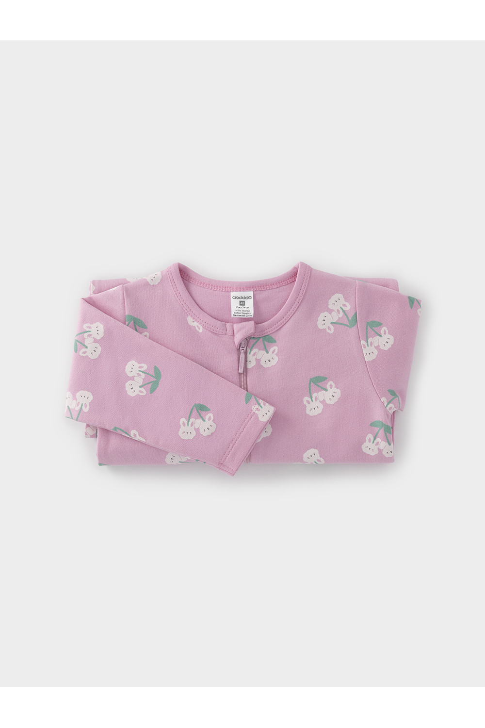 Комбинезон для новорождённых из тонкого футера с начёсом, произведённого из натурального хлопка. Застёгивается спереди на молнию с мягкой защитой шеи и подбородка. Оригинальная набивка выполнена из стойких гипоаллергенных текстильных красителей. Все трикотажные полотна производятся в соответствии с нормами швейцарского сертификата ЭкоТекс.