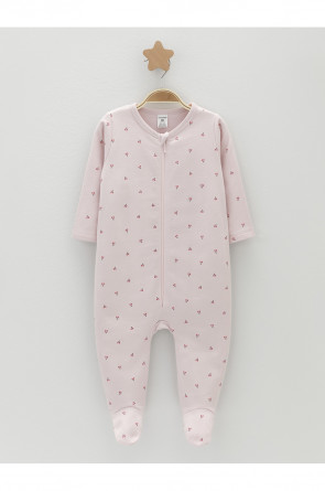 Комбинезон для новорождённых из тонкого футера с начёсом, произведённого из натурального хлопка. Застёгивается спереди на молнию с мягкой защитой шеи и подбородка. Оригинальная набивка выполнена из стойких гипоаллергенных текстильных красителей. Все трикотажные полотна производятся в соответствии с нормами швейцарского сертификата ЭкоТекс.