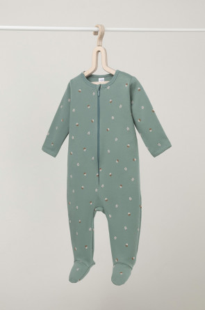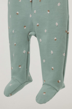 Комбинезон для новорождённых из тонкого трикотажа с начёсом, произведённого из натурального хлопка. Изделие застёгивается спереди на молнию. Оригинальная набивка выполнена из стойких, гипоаллергенных текстильных красителей. Все трикотажные полотна производятся в соответствии с нормами Швейцарского сертификата ЭкоТекс.