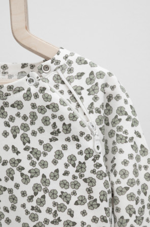 Комбинезон для новорождённых из мягкого, эластичного трикотажа, произведённого из натурального хлопка. Изделие застёгивается на молнию и кнопку. На рукавах мягкие манжеты. Оригинальная набивка выполнена из стойких, гипоаллергенных текстильных красителей. Все трикотажные полотна производятся в соответствии с нормами Швейцарского сертификата ЭкоТекс.