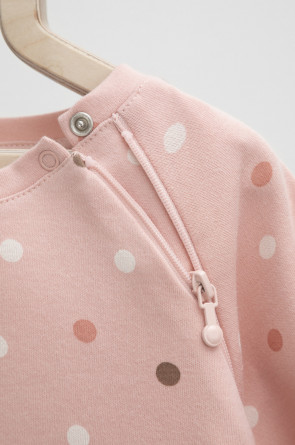 Комбинезон для новорождённых из мягкого, эластичного трикотажа, произведённого из натурального хлопка. Изделие застёгивается на молнию и кнопку. На рукавах мягкие манжеты. Оригинальная набивка выполнена из стойких, гипоаллергенных текстильных красителей. Все трикотажные полотна производятся в соответствии с нормами Швейцарского сертификата ЭкоТекс.
