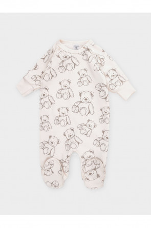 Комбинезон для новорождённых из мягкого, эластичного трикотажа, произведённого из натурального хлопка. Изделие застёгивается на молнию и кнопку. На рукавах мягкие манжеты. Оригинальная набивка выполнена из стойких, гипоаллергенных текстильных красителей. Все трикотажные полотна производятся в соответствии с нормами Швейцарского сертификата ЭкоТекс.