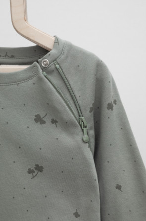 Комбинезон для новорождённых из мягкого, эластичного трикотажа, произведённого из натурального хлопка. Изделие застёгивается на молнию и кнопку. На рукавах мягкие манжеты. Оригинальная набивка выполнена из стойких, гипоаллергенных текстильных красителей. Все трикотажные полотна производятся в соответствии с нормами Швейцарского сертификата ЭкоТекс.