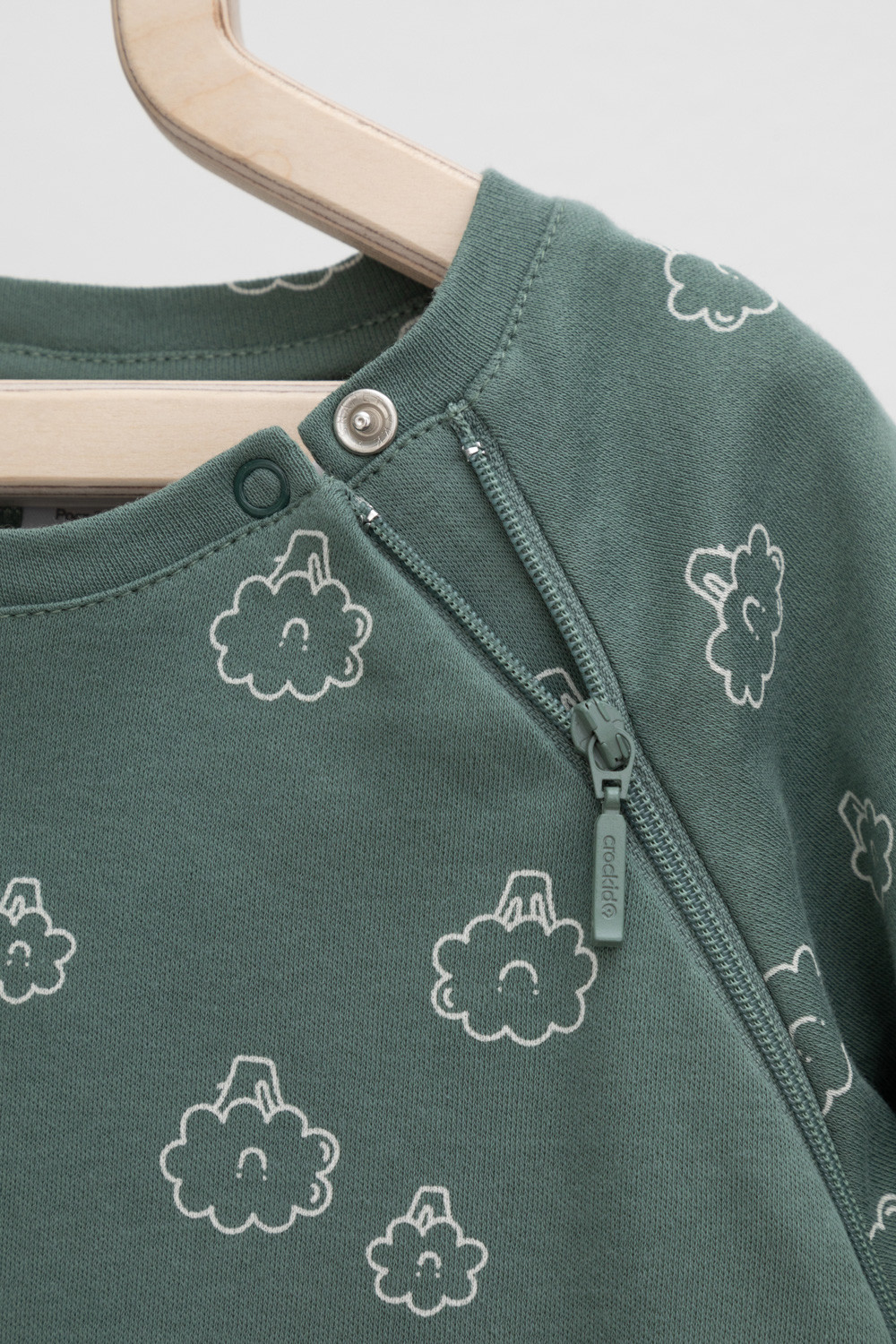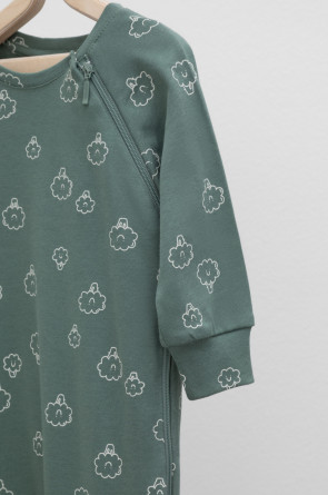Комбинезон для новорождённых из мягкого, эластичного трикотажа, произведённого из натурального хлопка. Изделие застёгивается на молнию и кнопку. На рукавах мягкие манжеты. Оригинальная набивка выполнена из стойких, гипоаллергенных текстильных красителей. Все трикотажные полотна производятся в соответствии с нормами Швейцарского сертификата ЭкоТекс.
