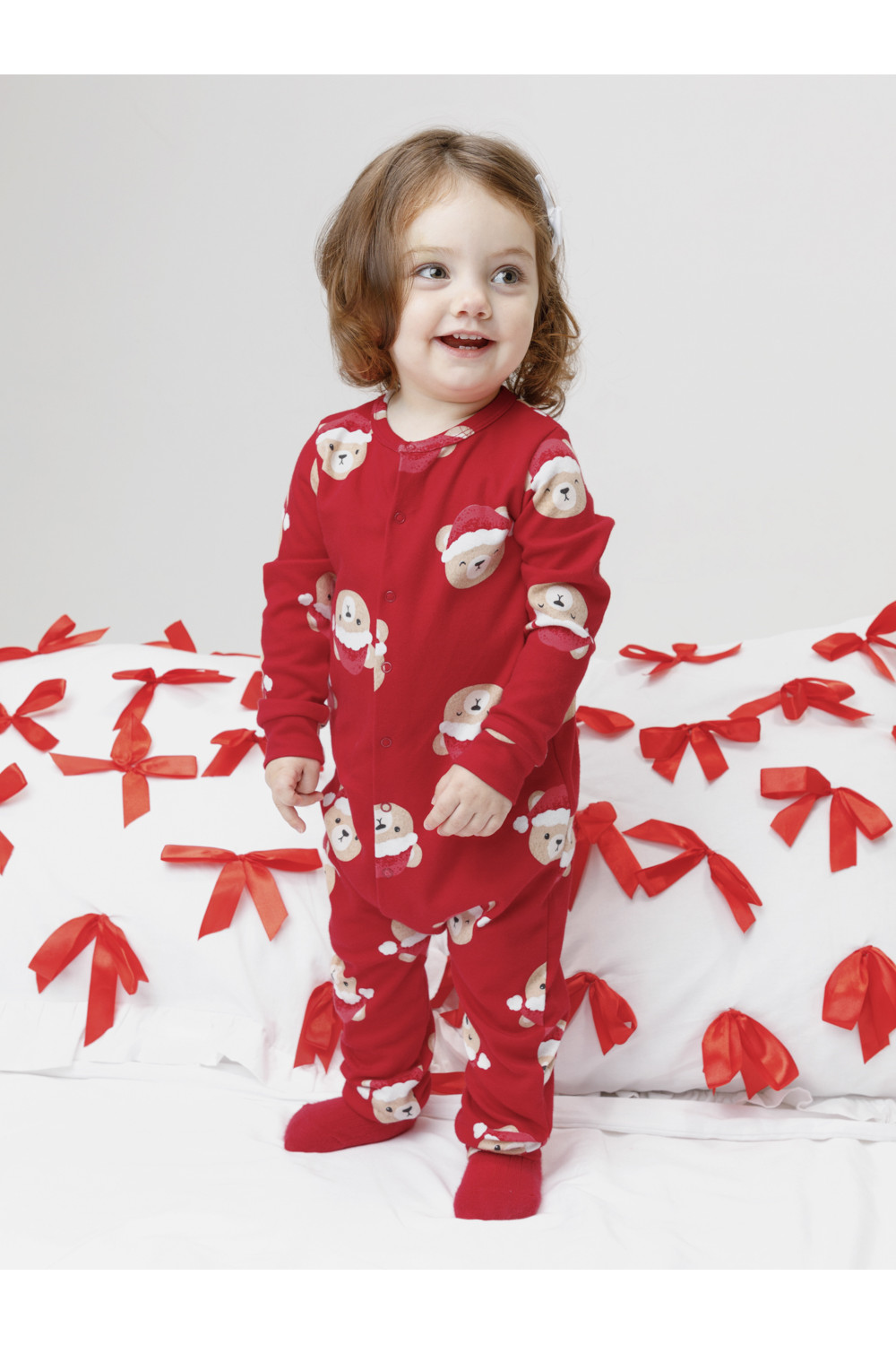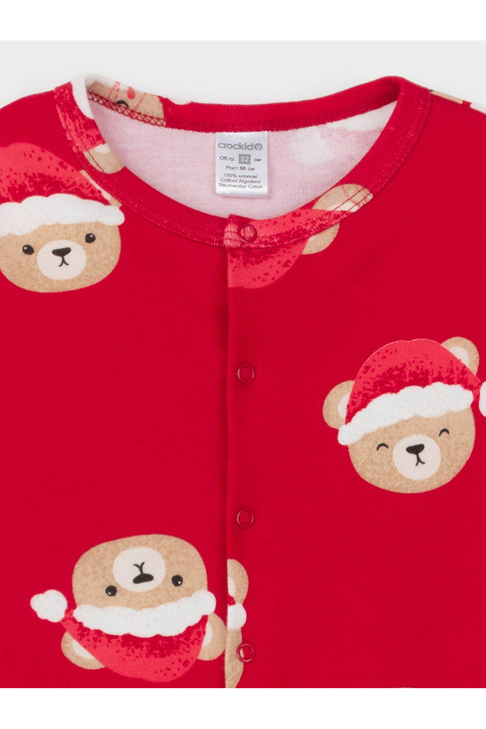Трикотажный комбинезон из эластичного гладкого полотна интерлок. Материал произведён из высококачественного натурального хлопка. Комбинезон застёгивается спереди на кнопки. На рукавах и по низу изделия мягкие манжеты. Отлично подойдёт для создания праздничных образов или в качестве подарка малышу на Новый год и Рождество. Оригинальная набивка выполнена из стойких текстильных гипоаллергенных красителей. Изделие сохраняет цвет и форму после многократных стирок. Все трикотажные полотна производятся в соответствии с нормами швейцарского сертификата ЭкоТекс.