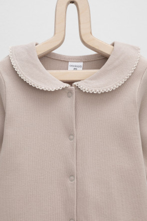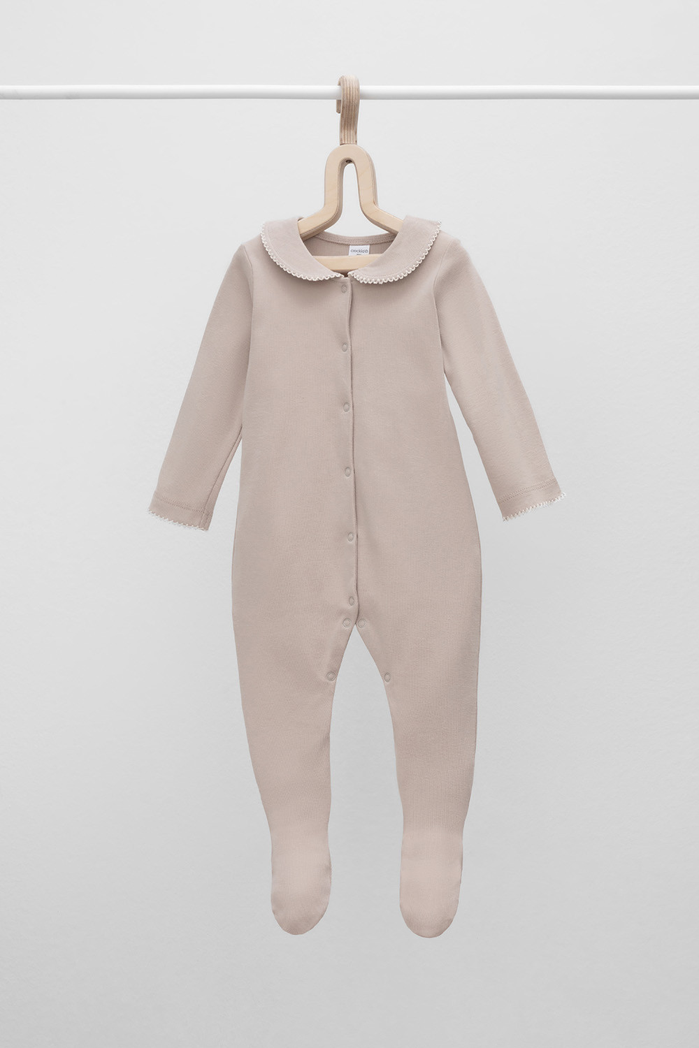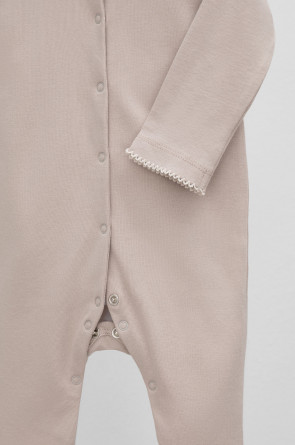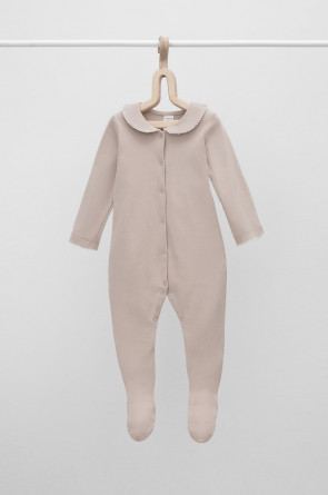 Комбинезон с воротником для новорожденных из мягкого, эластичного трикотажа, произведенного из натурального хлопка. У изделия застежка на кнопки. Все трикотажные полотна производятся в соответсвии с нормами Швейцарского сертификата ЭкоТекс.