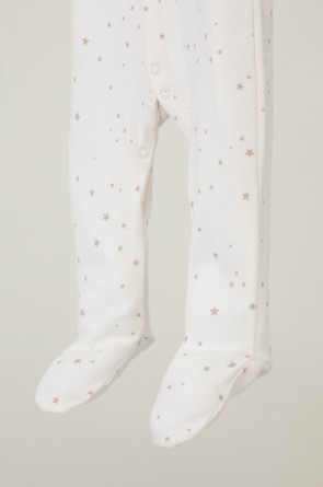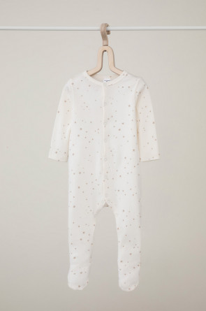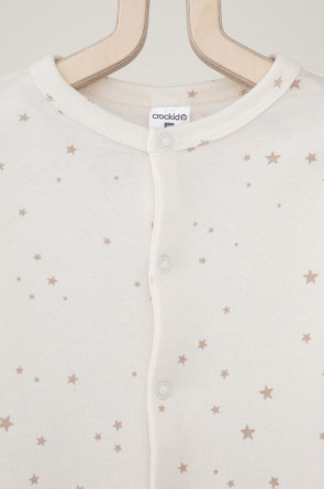 Комбинезон для новорождённых из мягкого, эластичного трикотажа - рибаны. У изделия застёжка на кнопки. В размерах 32/50 и 36/56 на рукавах предусмотрены антицарапки, швы выполнены наружу. Все трикотажные полотна производятся в соответствии с нормами Швейцарского сертификата ЭкоТекс.