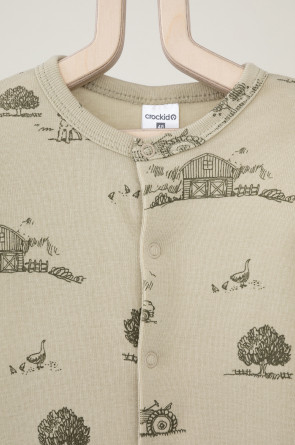 Комбинезон для новорождённых из мягкого, эластичного трикотажа - рибаны. У изделия застёжка на кнопки. В размерах 32/50 и 36/56 на рукавах предусмотрены антицарапки, швы выполнены наружу. Все трикотажные полотна производятся в соответствии с нормами Швейцарского сертификата ЭкоТекс.