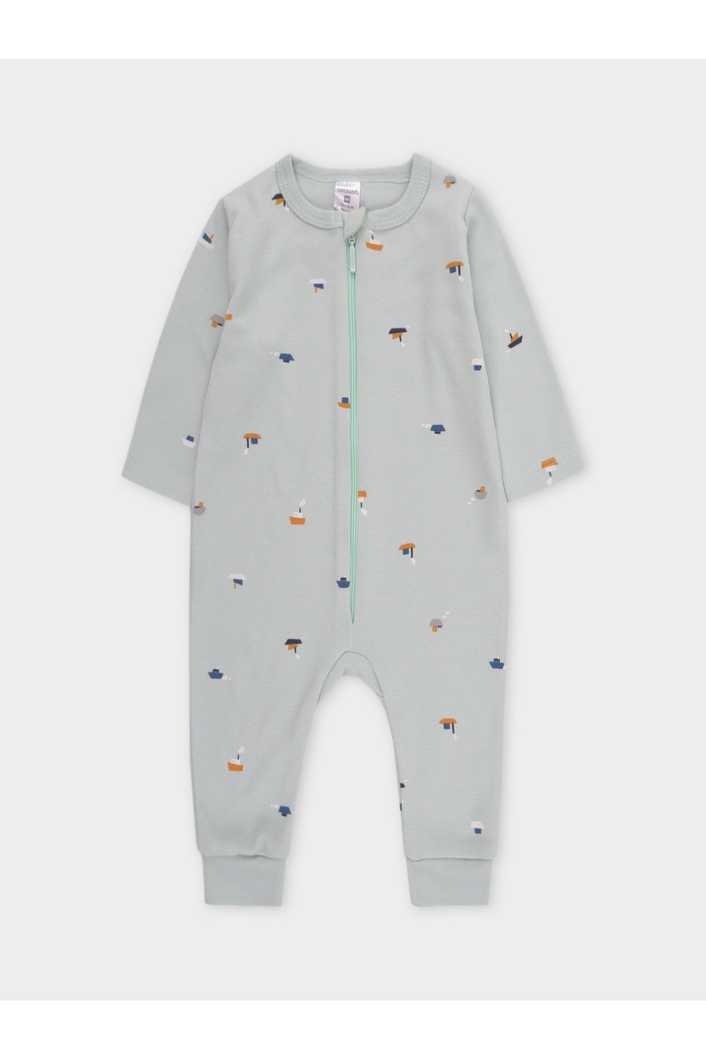 Комбинезон для новорожденных из мягкого, эластичного трикотажа, произведенного из натурального хлопка. Изделие застегивается на молнию. Оригинальная набивка выполнена из стойких, гипоаллергенных текстильных красителей. Все трикотажные полотна производятся в соответсвии с нормами Швейцарского сертификата ЭкоТекс.