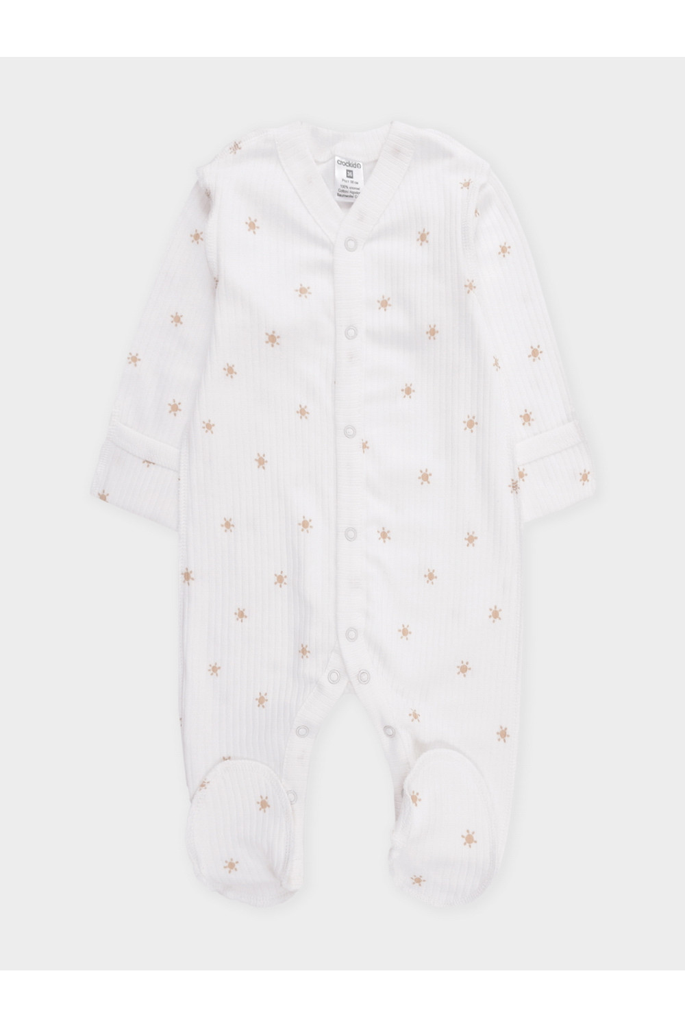 Комбинезон для новорождённых из мягкого, эластичного трикотажа, произведённого из натурального хлопка. Изделие застёгивается на кнопки. В размере 56 швы выполнены наружу. Все трикотажные полотна производятся в соответствии с нормами Швейцарского сертификата ЭкоТекс.