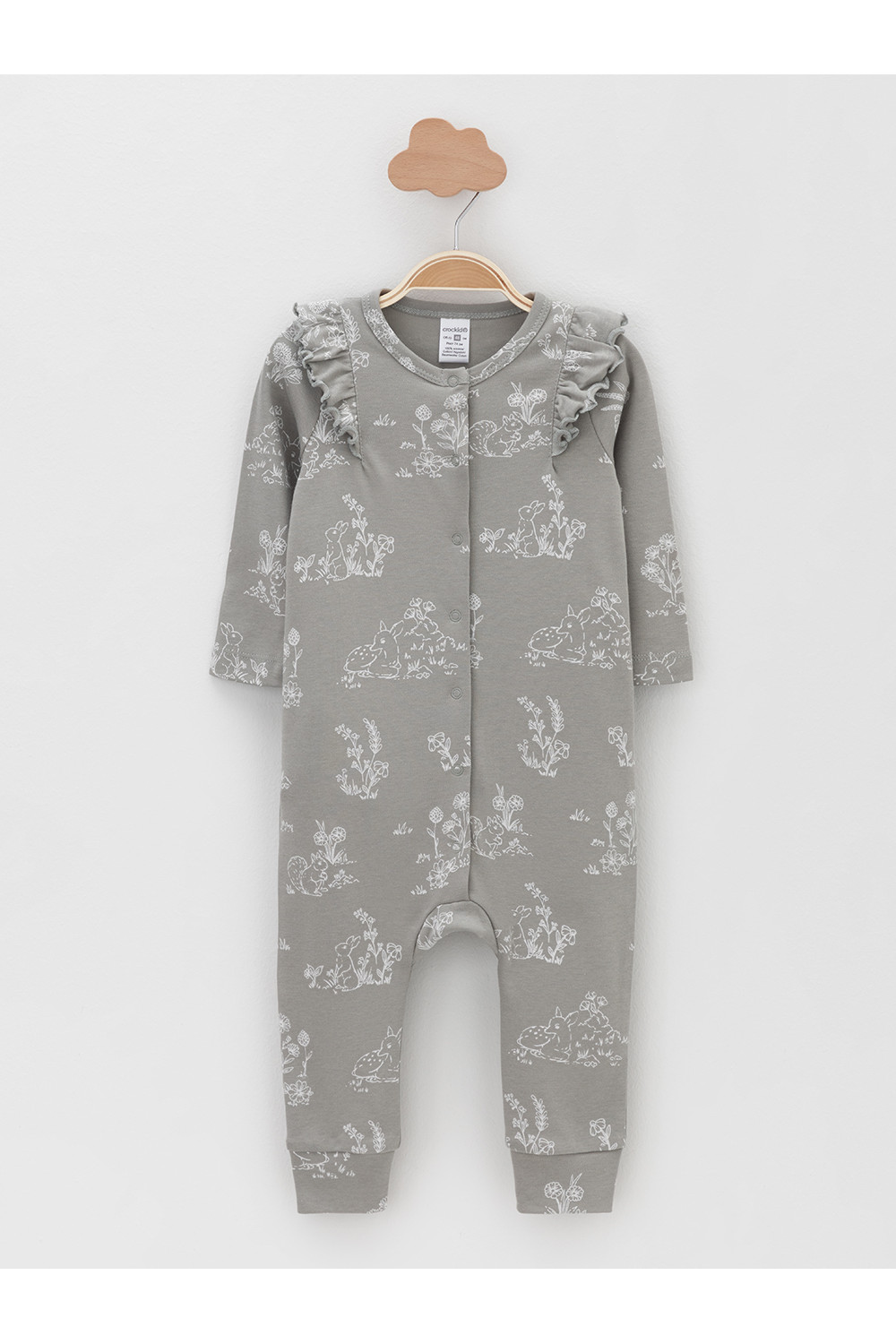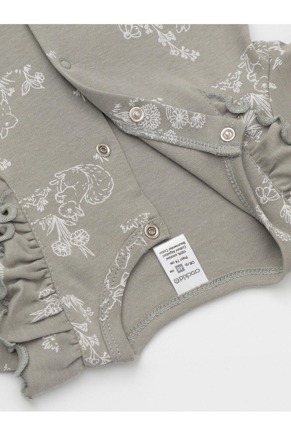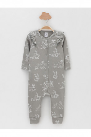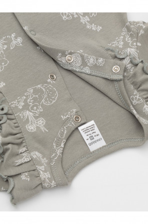 Комбинезон для новорождённых из мягкого эластичного трикотажа, произведённого из натурального хлопка. Застёгивается спереди на кнопки. Украшен воздушными крылышками. Оригинальная набивка выполнена из стойких гипоаллергенных текстильных красителей. Все трикотажные полотна производятся в соответствии с нормами швейцарского сертификата ЭкоТекс.