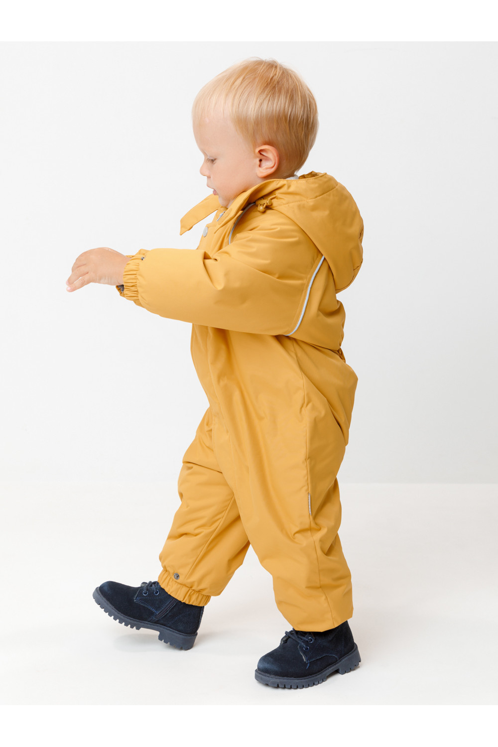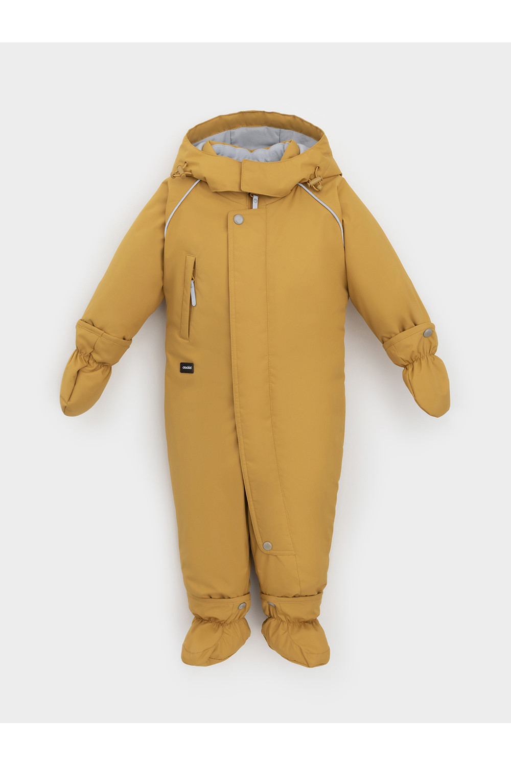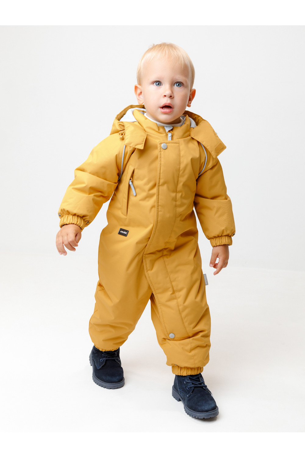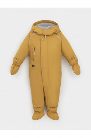Зимний комбинезон ясельный с утеплителем SEE®: 250 г/м2. Выполнен из мембранной ткани с дополнительной тефлоновой обработкой, которая предохраняет изделие от загрязнений и отталкивает влагу. Подклад выполнен из 100% хлопка. Комбинезон застёгивается на молнию и внешнюю планку на липучках, предусмотрена защита подбородка. Несъёмный капюшон имеет эластичную утяжку со стопперами. Резинка по спинке для лучшего прилегания. На груди карман на молнии. По рукавам и низу изделия эластичные манжеты, на ножках отстёгивающиеся силиконовые штрипки. В размерах 74-80 и 80-86 в комплекте идут рукавицы и пинетки. Во всех изделиях верхнего ассортимента для безопасности ребёнка предусмотрены светоотражающие элементы.