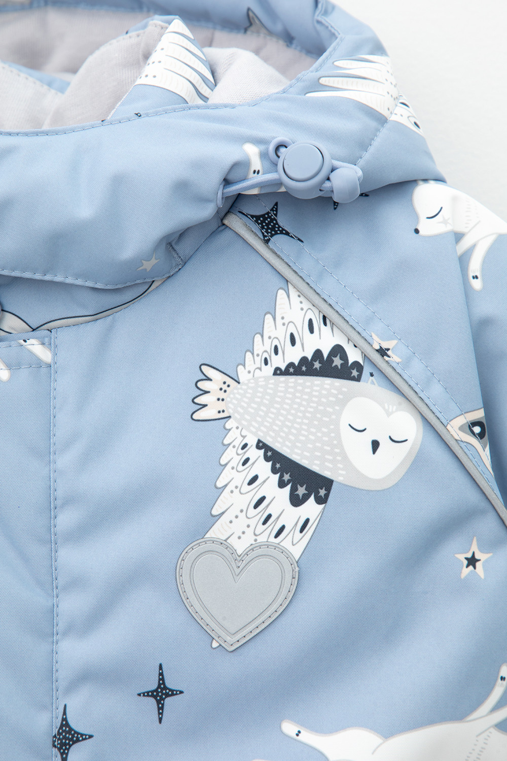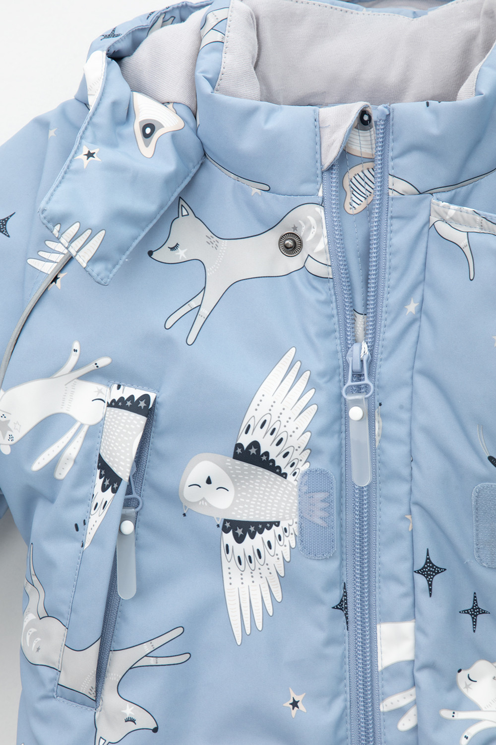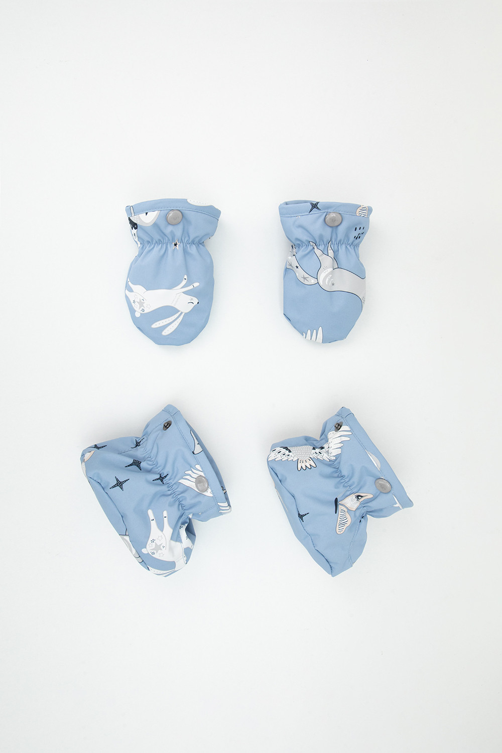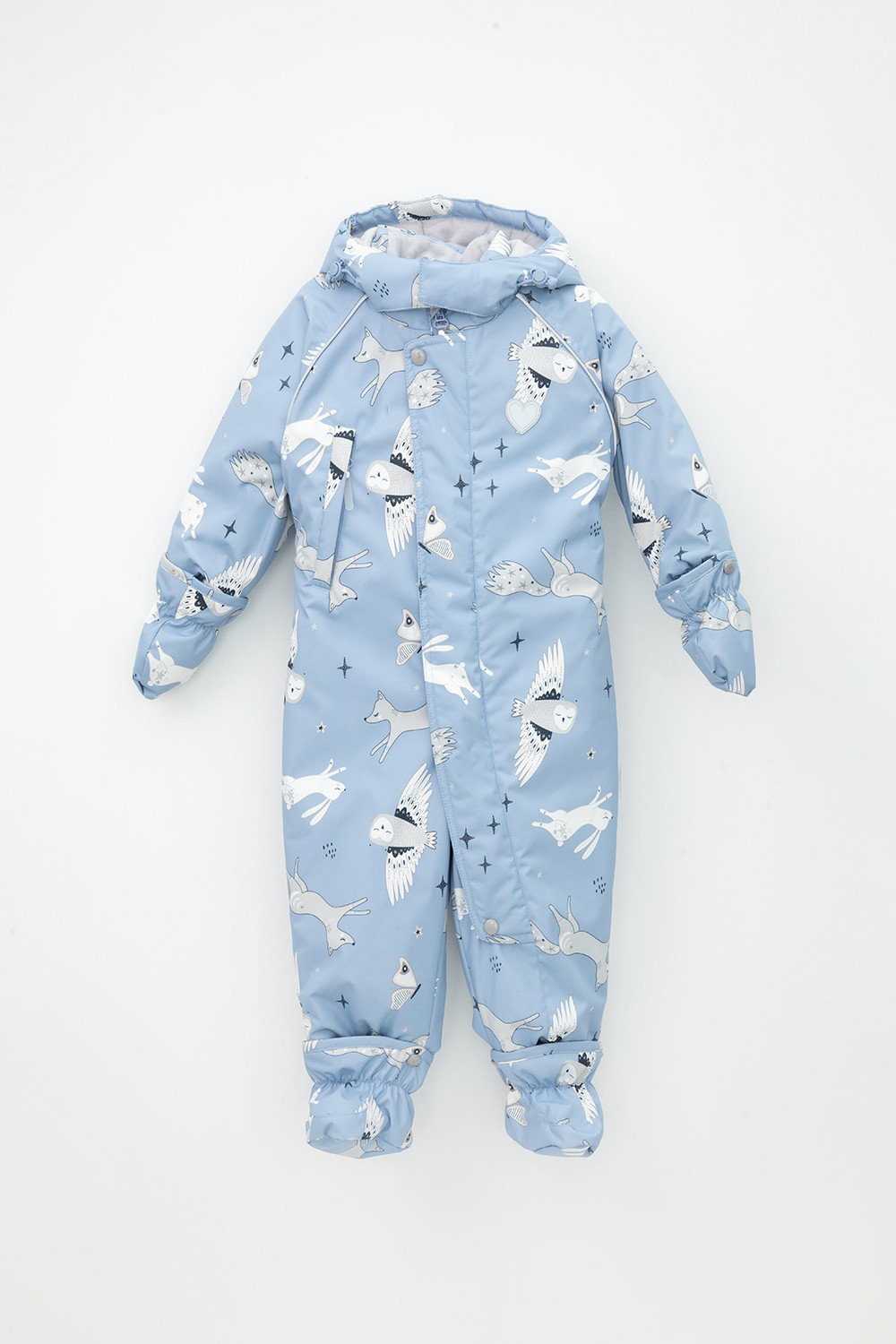 • Дополнительно в размерах 68-74, 74-80, 80-86  пристегивающиеся утепленные варежки и пинетки.