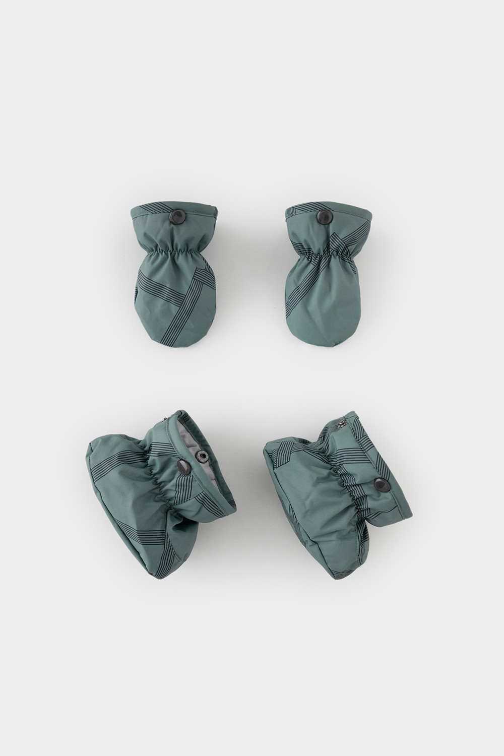 • Дополнительно в размерах 74-80, 80-86 пристегивающиеся утепленные варежки и пинетки.