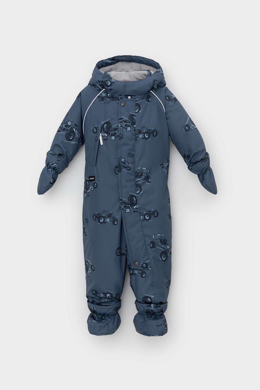 • Дополнительно в размерах 74-80, 80-86 пристегивающиеся утепленные варежки и пинетки.