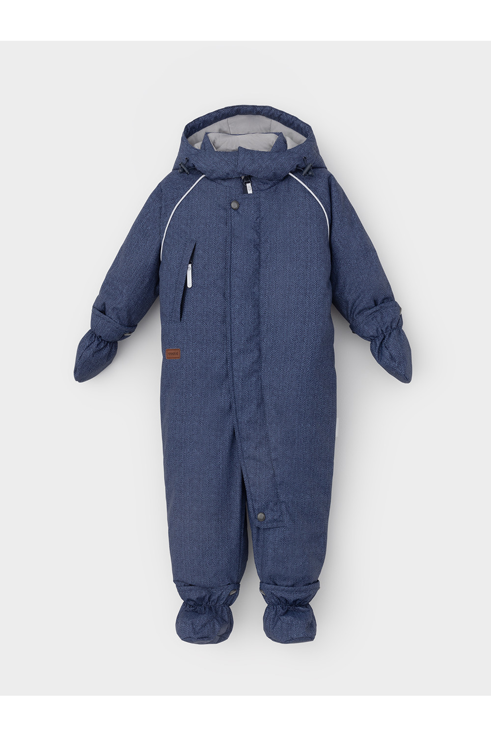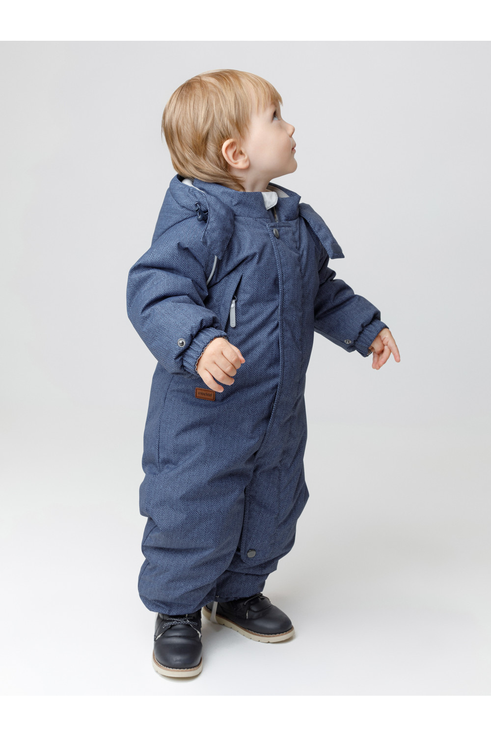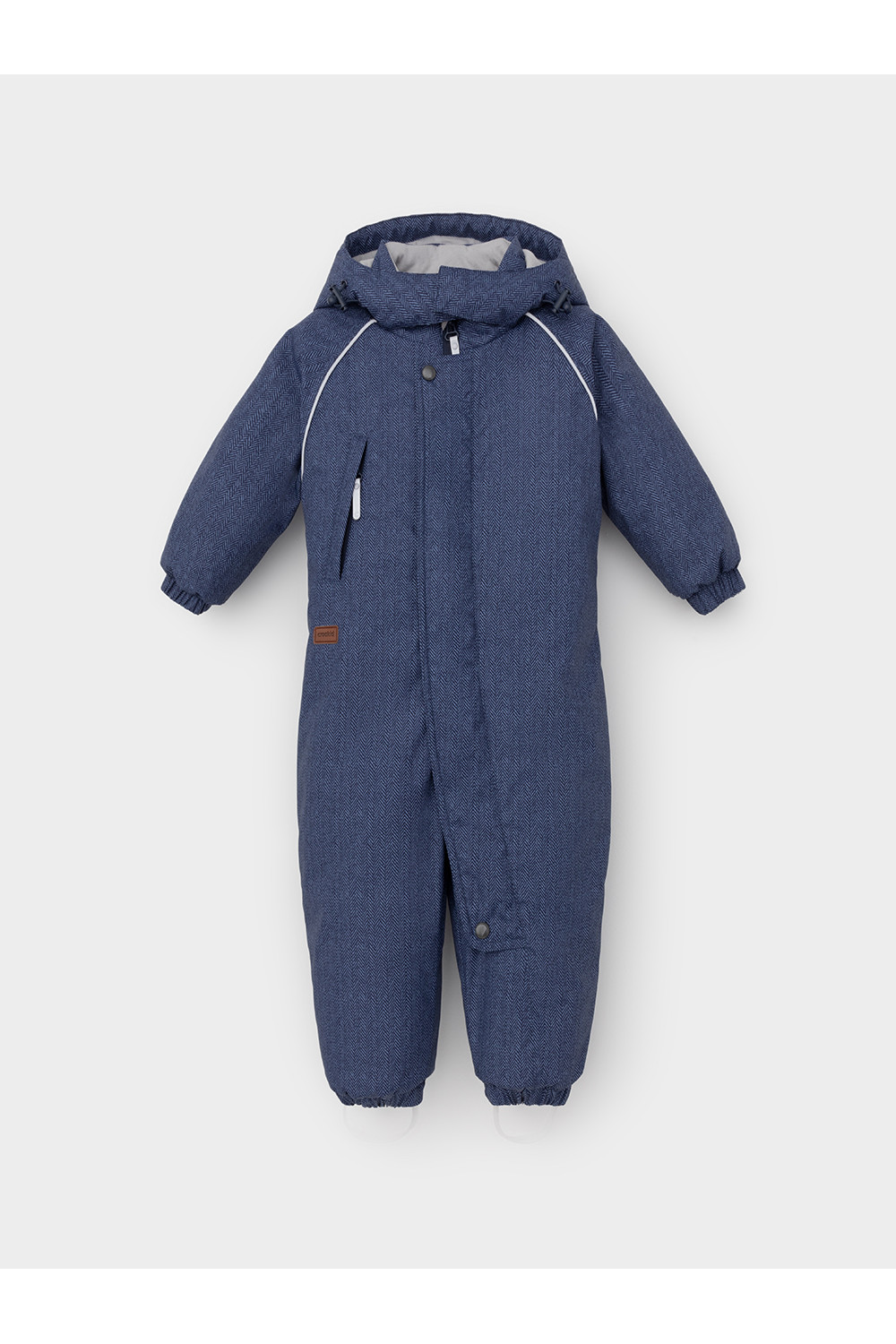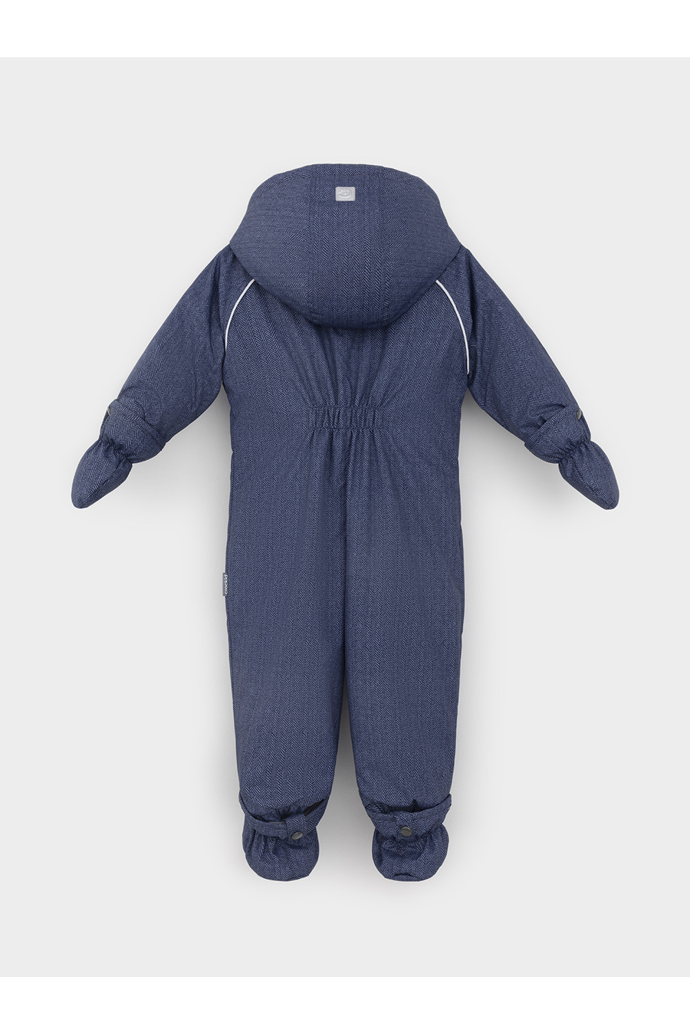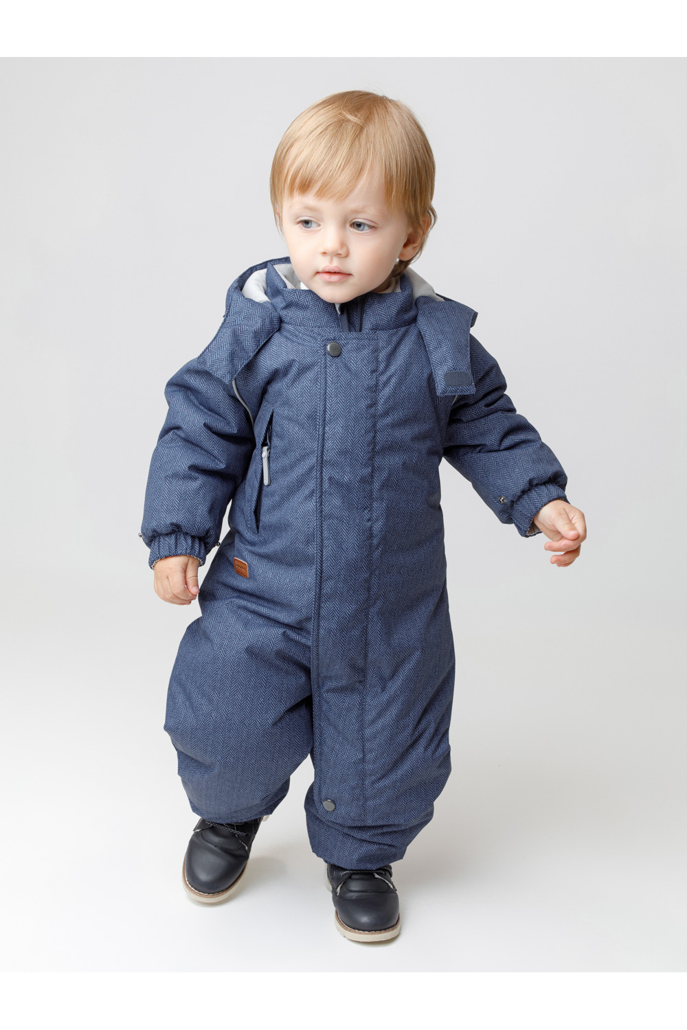 Зимний комбинезон ясельный с утеплителем SEE®: 250 г/м2. Выполнен из мембранной ткани с дополнительной тефлоновой обработкой, которая предохраняет изделие от загрязнений и отталкивает влагу. Подклад выполнен из 100% хлопка. Комбинезон застёгивается на молнию и внешнюю планку на липучках, предусмотрена защита подбородка. Несъёмный капюшон имеет эластичную утяжку со стопперами. Резинка по спинке для лучшего прилегания. На груди карман на молнии. По рукавам и низу изделия эластичные манжеты, на ножках отстёгивающиеся силиконовые штрипки. В размерах 74-80 и 80-86 в комплекте идут рукавицы и пинетки. Во всех изделиях верхнего ассортимента для безопасности ребёнка предусмотрены светоотражающие элементы.