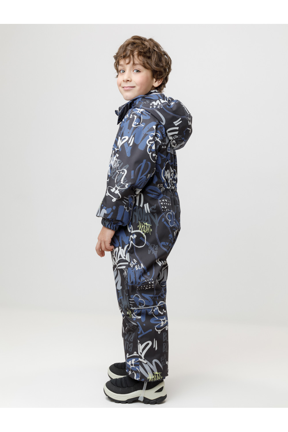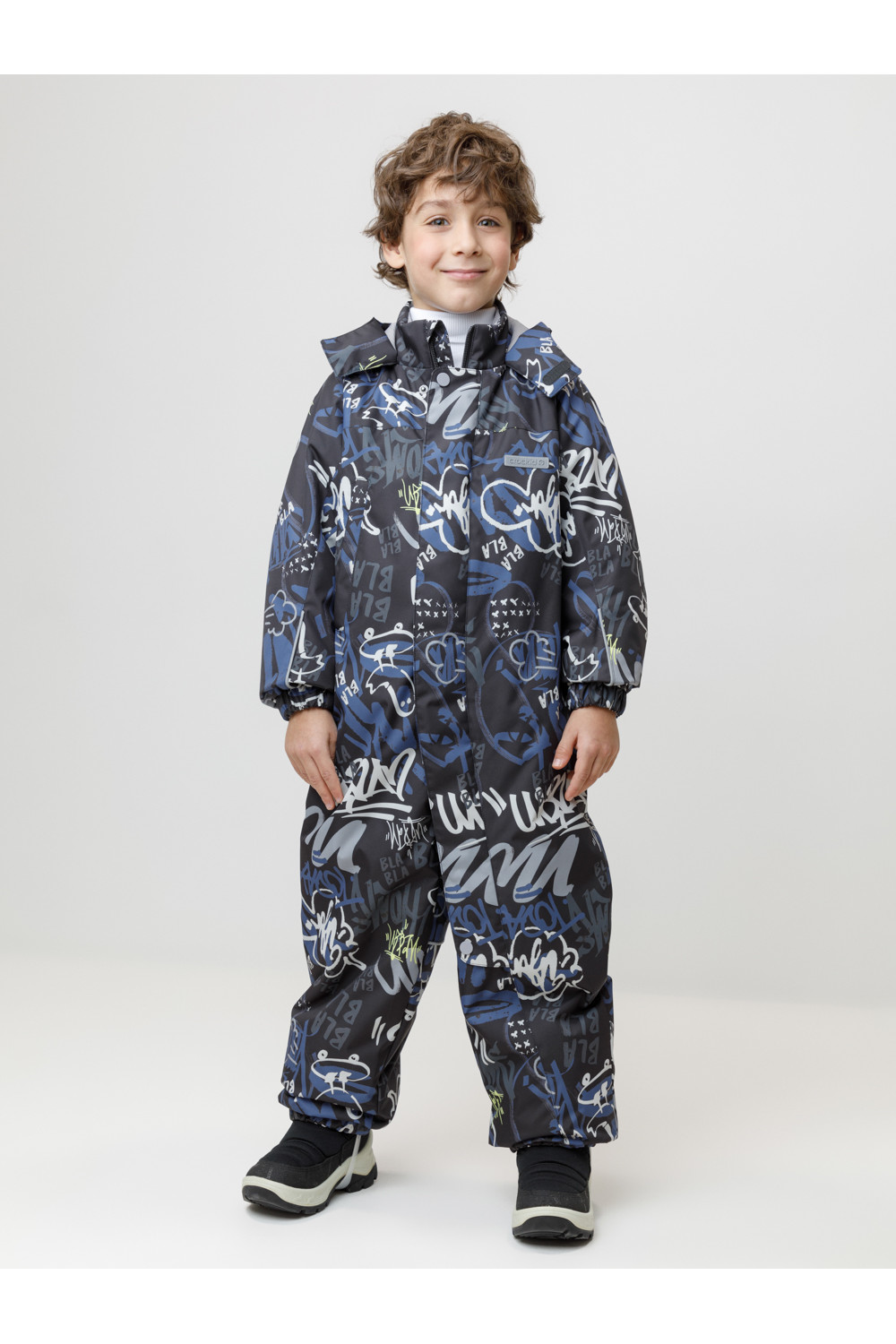 Демисезонный комбинезон для мальчика с утеплителем Fellex®, 120 г/м2. Выполнен из мембранной ткани с дополнительной тефлоновой обработкой. Данный вид обработки предохраняет изделие от загрязнения и лучше отводит влагу. Подклад из 100% полиэстера. Для удобного одевания комбинезон застёгивается на удлинённую молнию с защитой подбородка и имеет дополнительную ветрозащитную планку на липучках и кнопках. Капюшон не снимается, по верхнему краю есть эластичная вставка. По низу рукавов и брючин, а также на спинке изделия предусмотрены эластичные резинки для лучшего прилегания. Для фиксации комбинезона используются съёмные силиконовые штрипки. Во всех изделиях верхнего ассортимента для безопасности ребёнка предусмотрены светоотражающие элементы.
