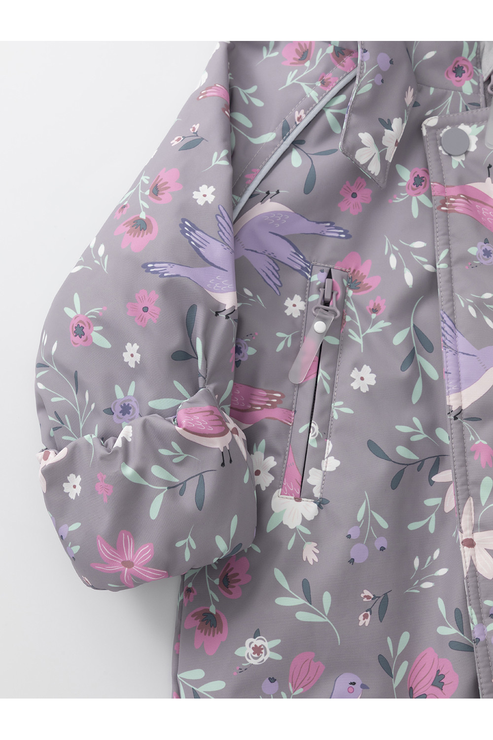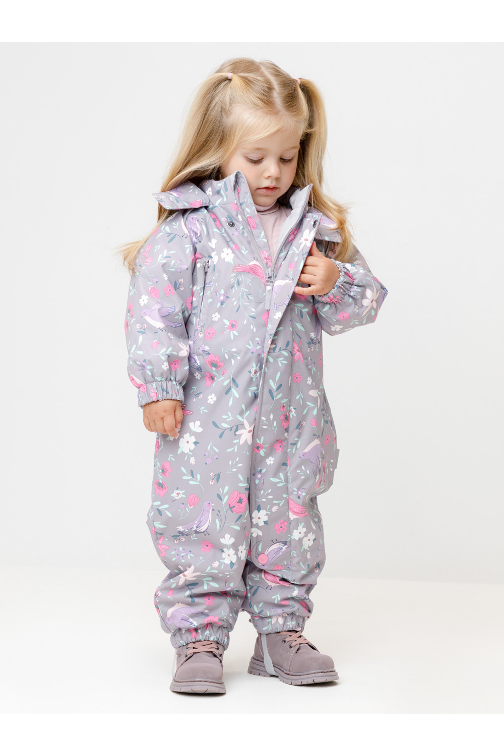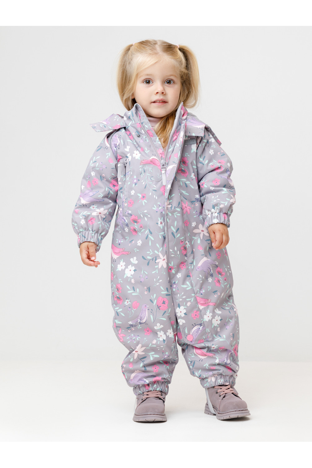 Демисезонный комбинезон ясельный с утеплителем SEE, 120 г/м2. Выполнен из мембранной ткани с дополнительной тефлоновой обработкой. Данный вид обработки предохраняет изделие от загрязнения и лучше отводит влагу. Подклад из 100% хлопка. Для удобного одевания комбинезон застёгивается на удлинённую молнию с защитой подбородка. Ветрозащитная планка фиксируется на липучках и кнопках. Утяжка на капюшоне с потайным стоппером. По низу рукавов и брючин, а также на спинке изделия предусмотрены эластичные резинки для лучшего прилегания. Для фиксации комбинезона используются съёмные силиконовые штрипки. В размере 74-80 есть функциональные отвороты на рукавах и брючинах. Во всех изделиях верхнего ассортимента для безопасности ребёнка предусмотрены светоотражающие элементы.