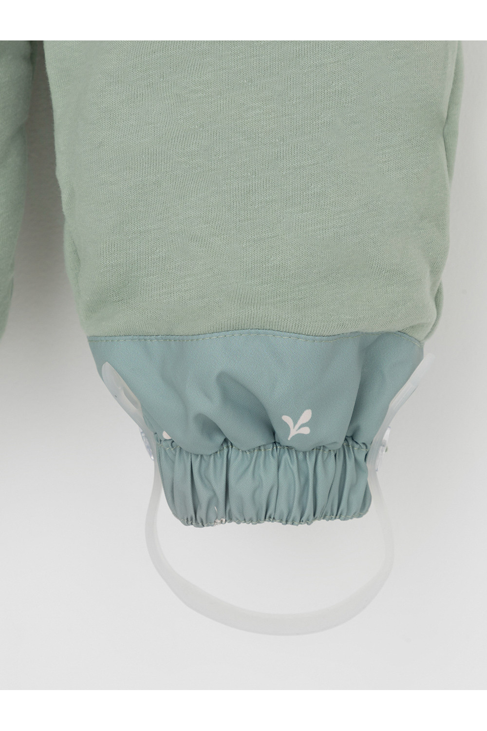 Демисезонный комбинезон ясельный с утеплителем SEE® 120 г/м2. Выполнен из мембранной ткани с дополнительной тефлоновой обработкой. Данный вид обработки предохраняет изделие от загрязнения и лучше отводит влагу. Подклад из 100% хлопка. Удлиненная молния для легкого одевания с защитой подбородка. Ветрозащитная планка фиксируется на липучках и кнопках. Утяжка на капюшоне с потайными стопперами. По низу рукавов и брючин, а также на спинке изделия предусмотрена эластичная резинка для лучшего прилегания. Для фиксации комбинезона используются съемные силиконовые штрипки. В размере 74-80 функциональные отвороты на рукавах и брючинах. Во всех изделиях верхнего ассортимента для безопасности ребенка предусмотрены светоотражающие элементы.