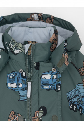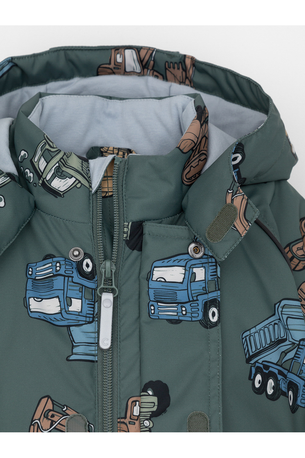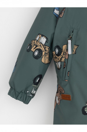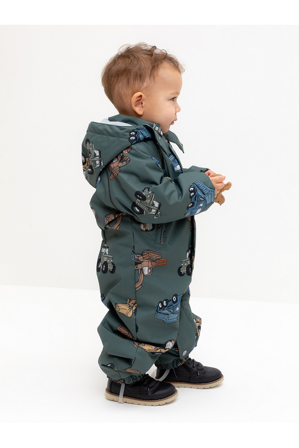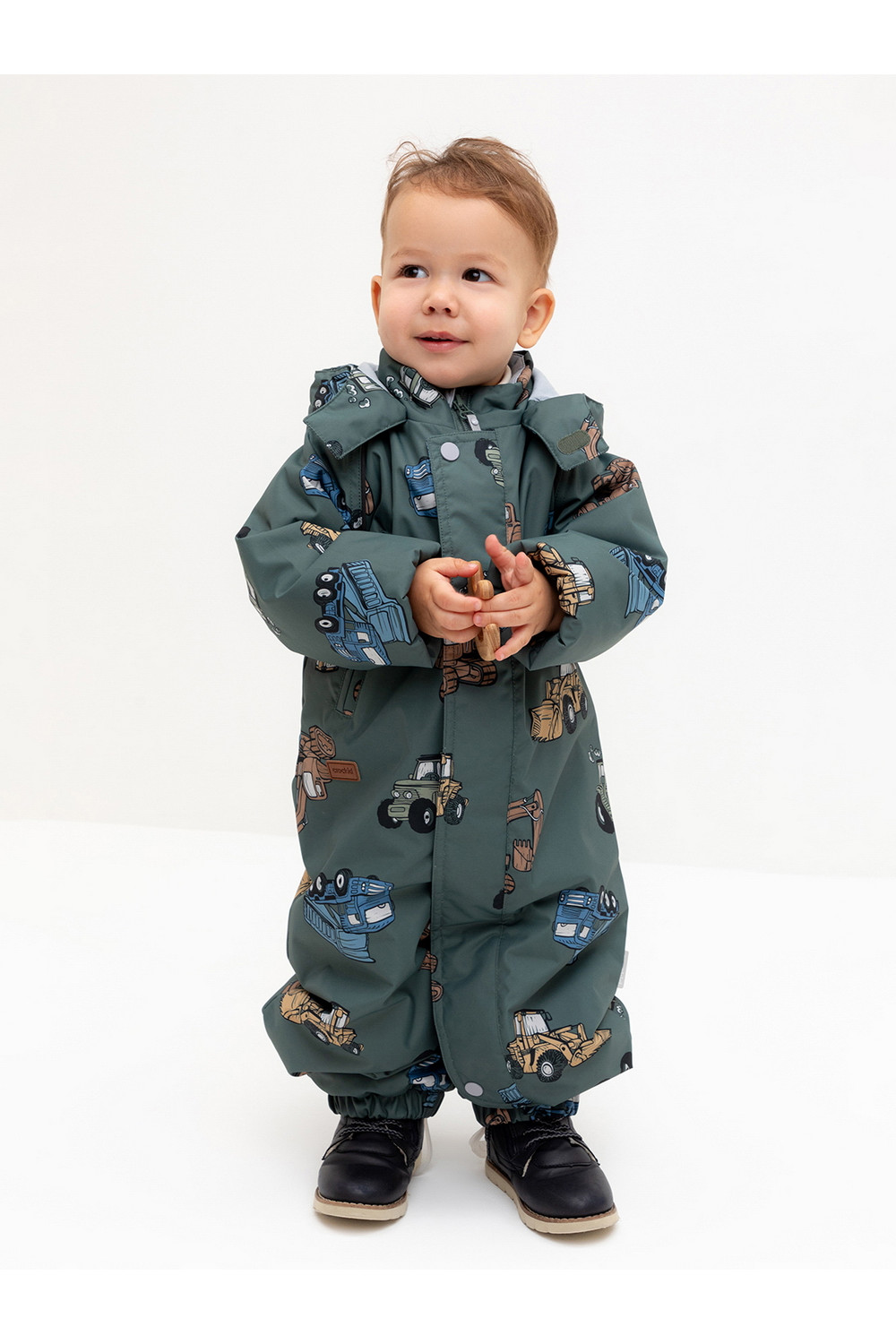Демисезонный комбинезон ясельный с утеплителем SEE® 120 г/м2. Выполнен из мембранной ткани с дополнительной тефлоновой обработкой. Данный вид обработки предохраняет изделие от загрязнения и лучше отводит влагу. Подклад из 100% хлопка. Удлиненная молния для легкого одевания с защитой подбородка. Ветрозащитная планка фиксируется на липучках и кнопках. Утяжка на капюшоне с потайными стопперами. По низу рукавов и брючин, а также на спинке изделия предусмотрена эластичная резинка для лучшего прилегания. Для фиксации комбинезона используются съемные силиконовые штрипки. В размере 74-80 функциональные отвороты на рукавах и брючинах. Во всех изделиях верхнего ассортимента для безопасности ребенка предусмотрены светоотражающие элементы.