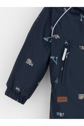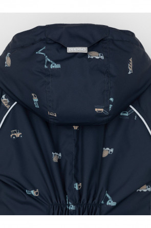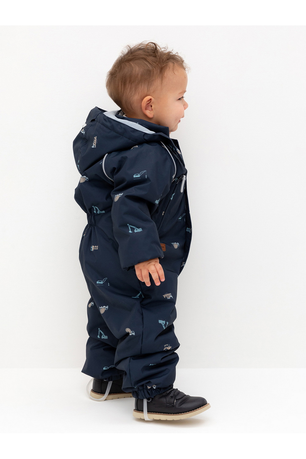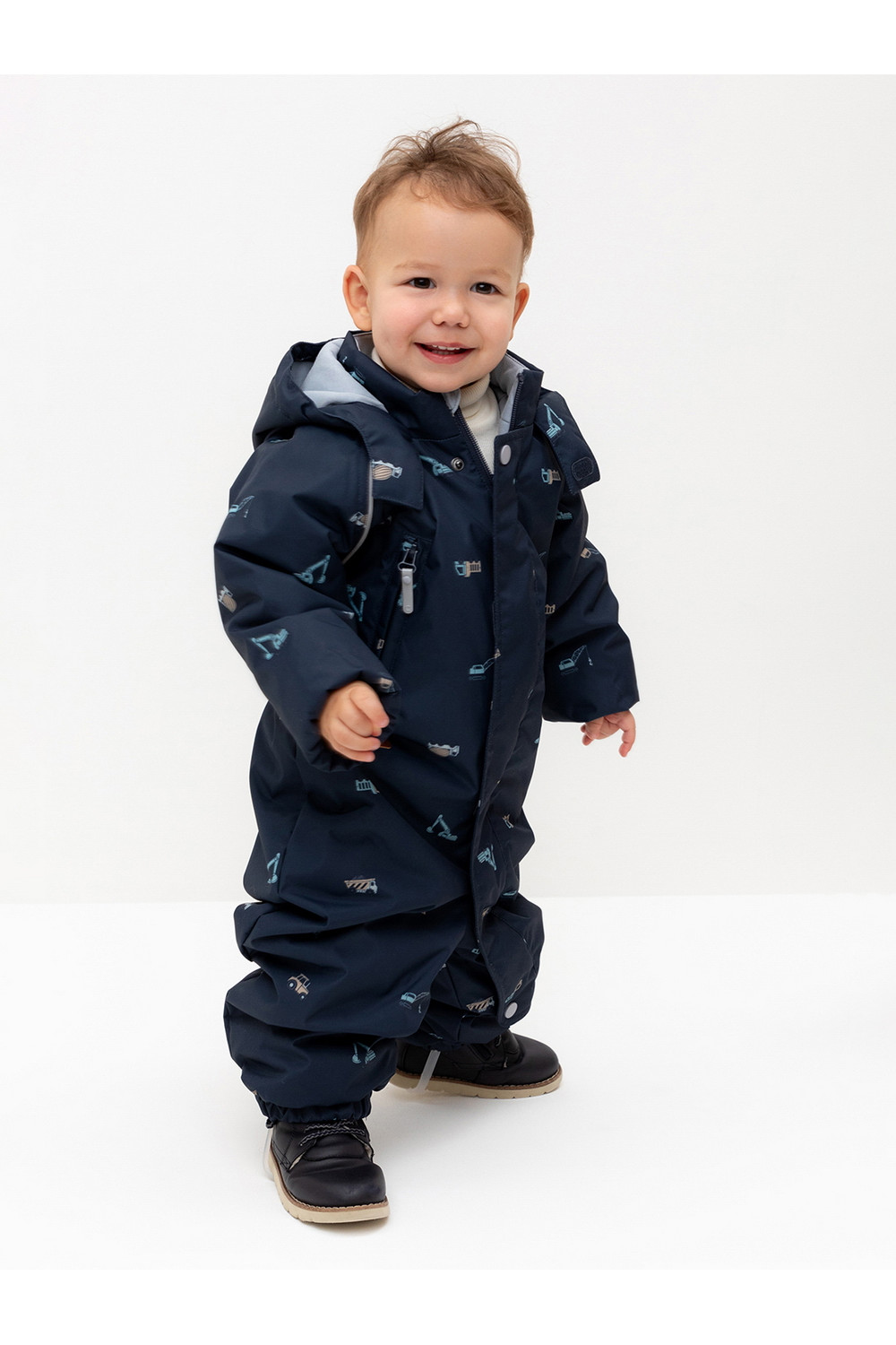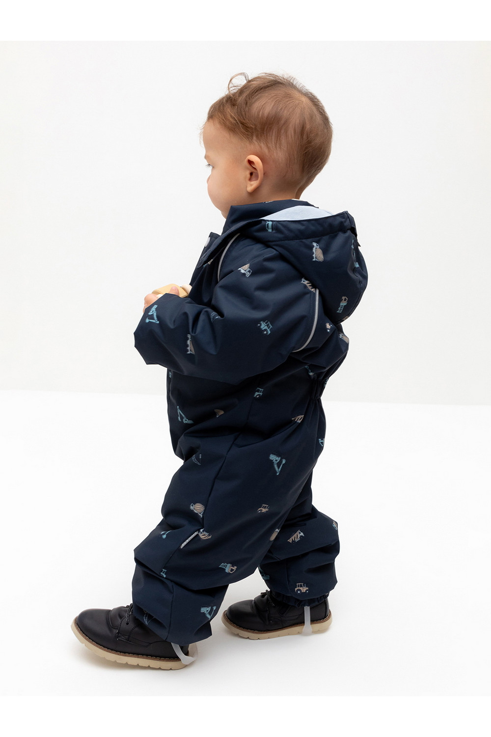 Демисезонный комбинезон ясельный с утеплителем SEE® 120 г/м2. Выполнен из мембранной ткани с дополнительной тефлоновой обработкой. Данный вид обработки предохраняет изделие от загрязнения и лучше отводит влагу. Подклад из 100% хлопка. Удлиненная молния для легкого одевания с защитой подбородка. Ветрозащитная планка фиксируется на липучках и кнопках. Утяжка на капюшоне с потайными стопперами. По низу рукавов и брючин, а также на спинке изделия предусмотрена эластичная резинка для лучшего прилегания. Для фиксации комбинезона используются съемные силиконовые штрипки. В размере 74-80 функциональные отвороты на рукавах и брючинах. Во всех изделиях верхнего ассортимента для безопасности ребенка предусмотрены светоотражающие элементы.