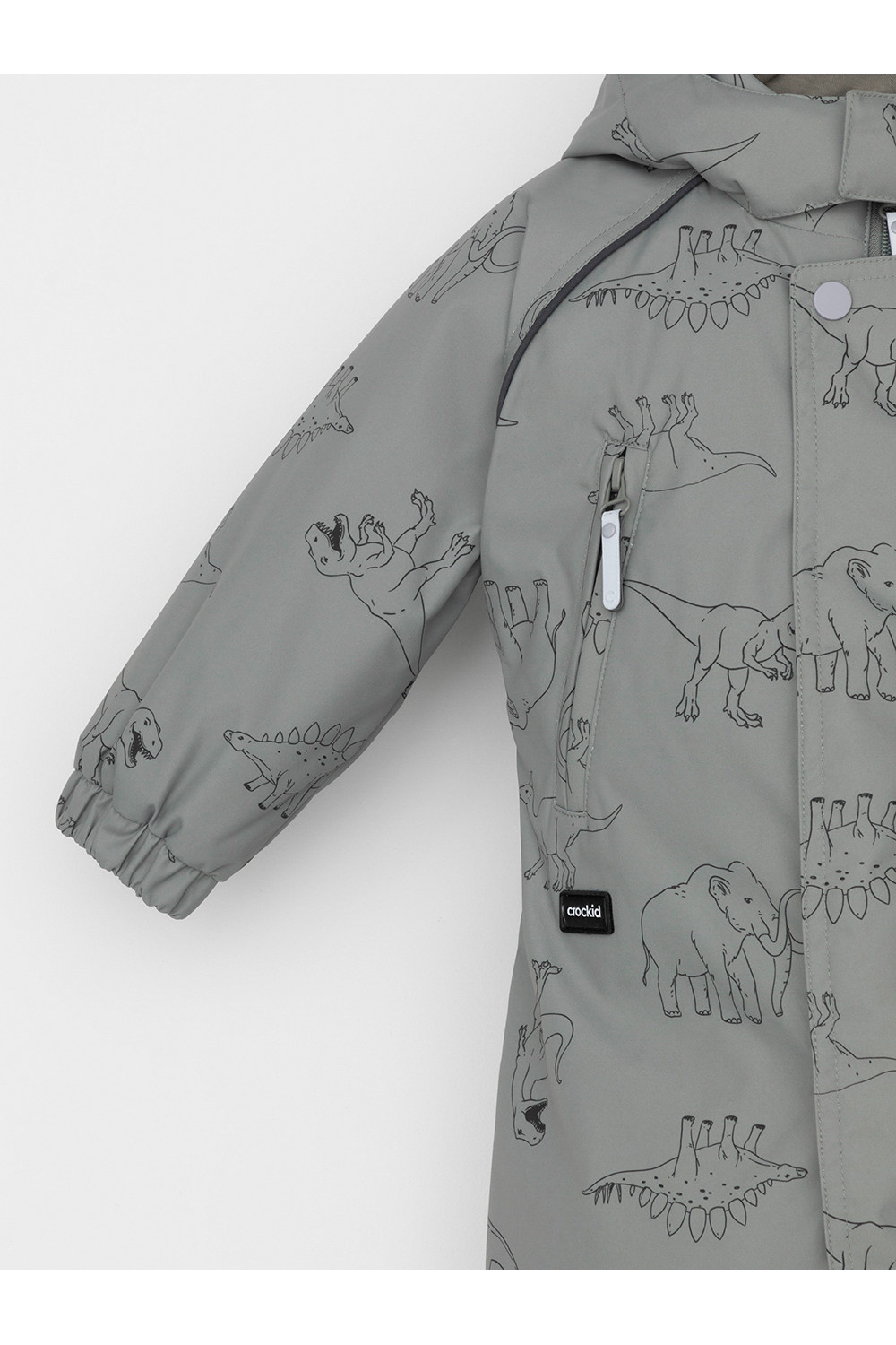 Демисезонный комбинезон ясельный с утеплителем SEE® 120 г/м2. Выполнен из мембранной ткани с дополнительной тефлоновой обработкой. Данный вид обработки предохраняет изделие от загрязнения и лучше отводит влагу. Подклад из 100% хлопка. Удлиненная молния для легкого одевания с защитой подбородка. Ветрозащитная планка фиксируется на липучках и кнопках. Утяжка на капюшоне с потайными стопперами. По низу рукавов и брючин, а также на спинке изделия предусмотрена эластичная резинка для лучшего прилегания. Для фиксации комбинезона используются съемные силиконовые штрипки. В размере 74-80 функциональные отвороты на рукавах и брючинах. Во всех изделиях верхнего ассортимента для безопасности ребенка предусмотрены светоотражающие элементы.